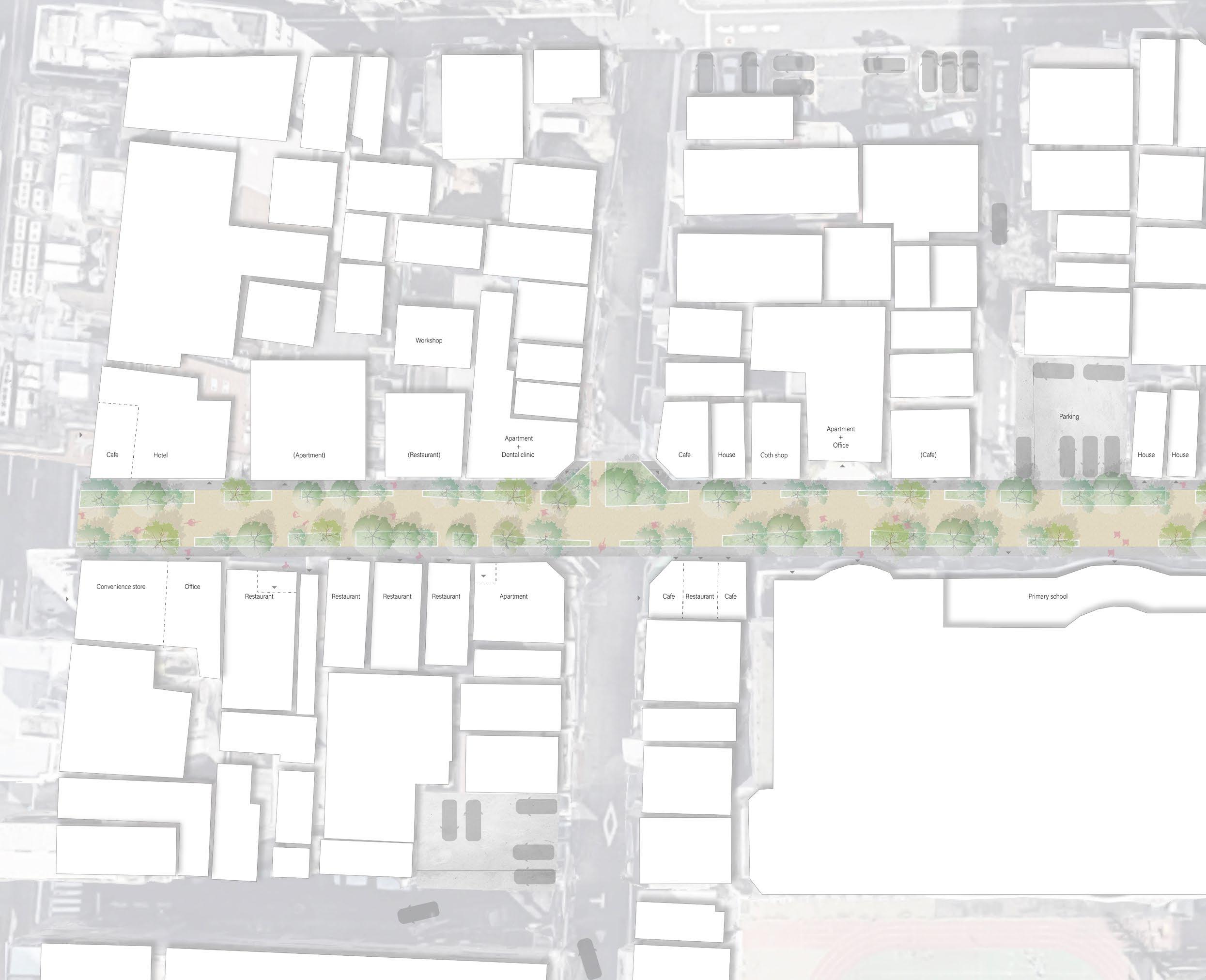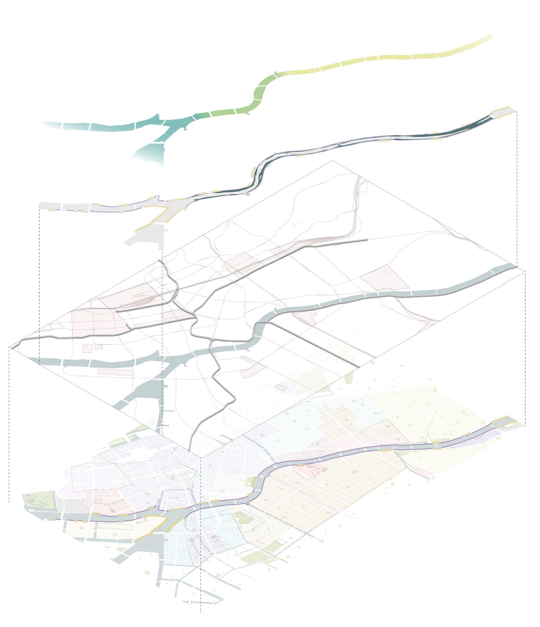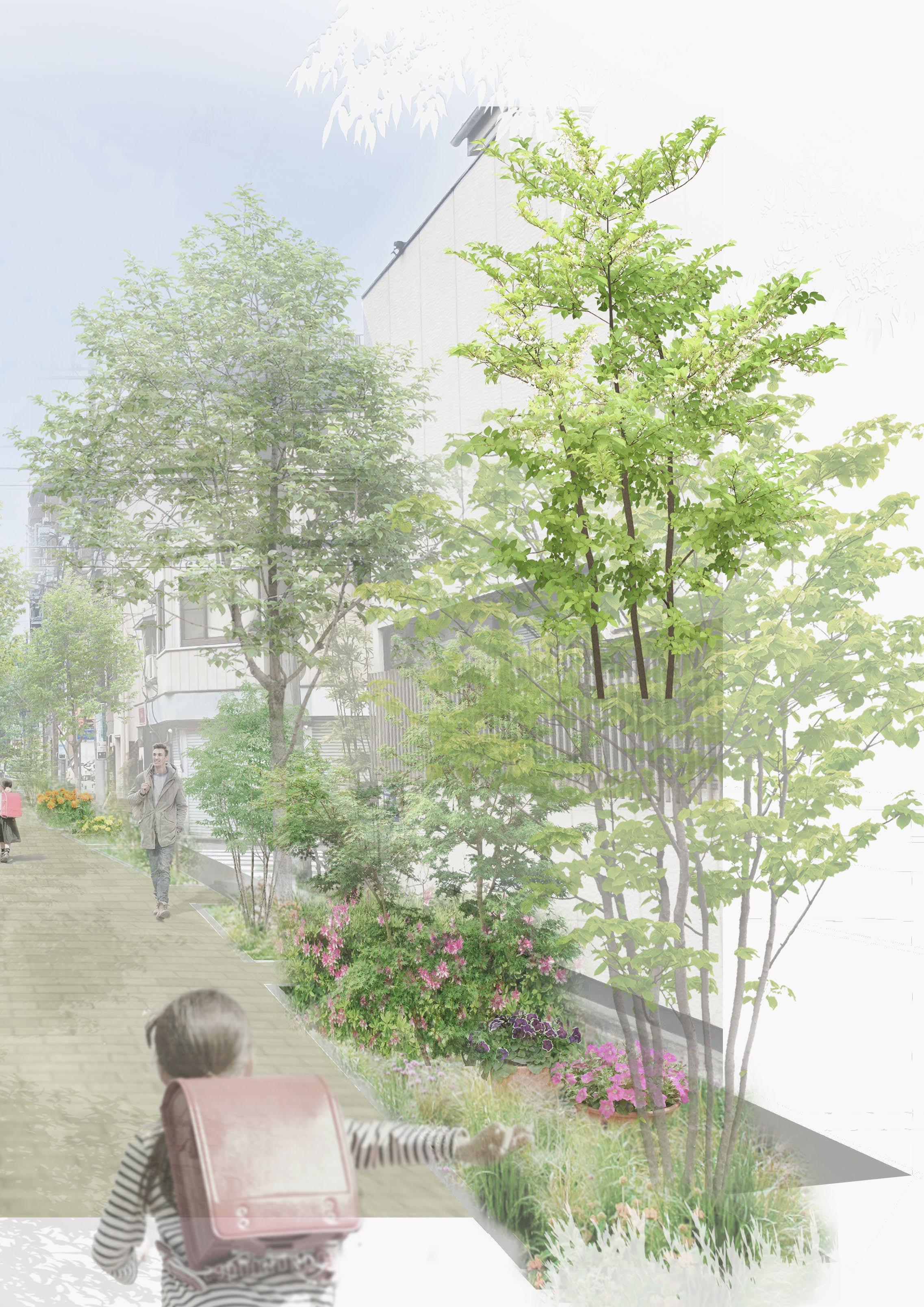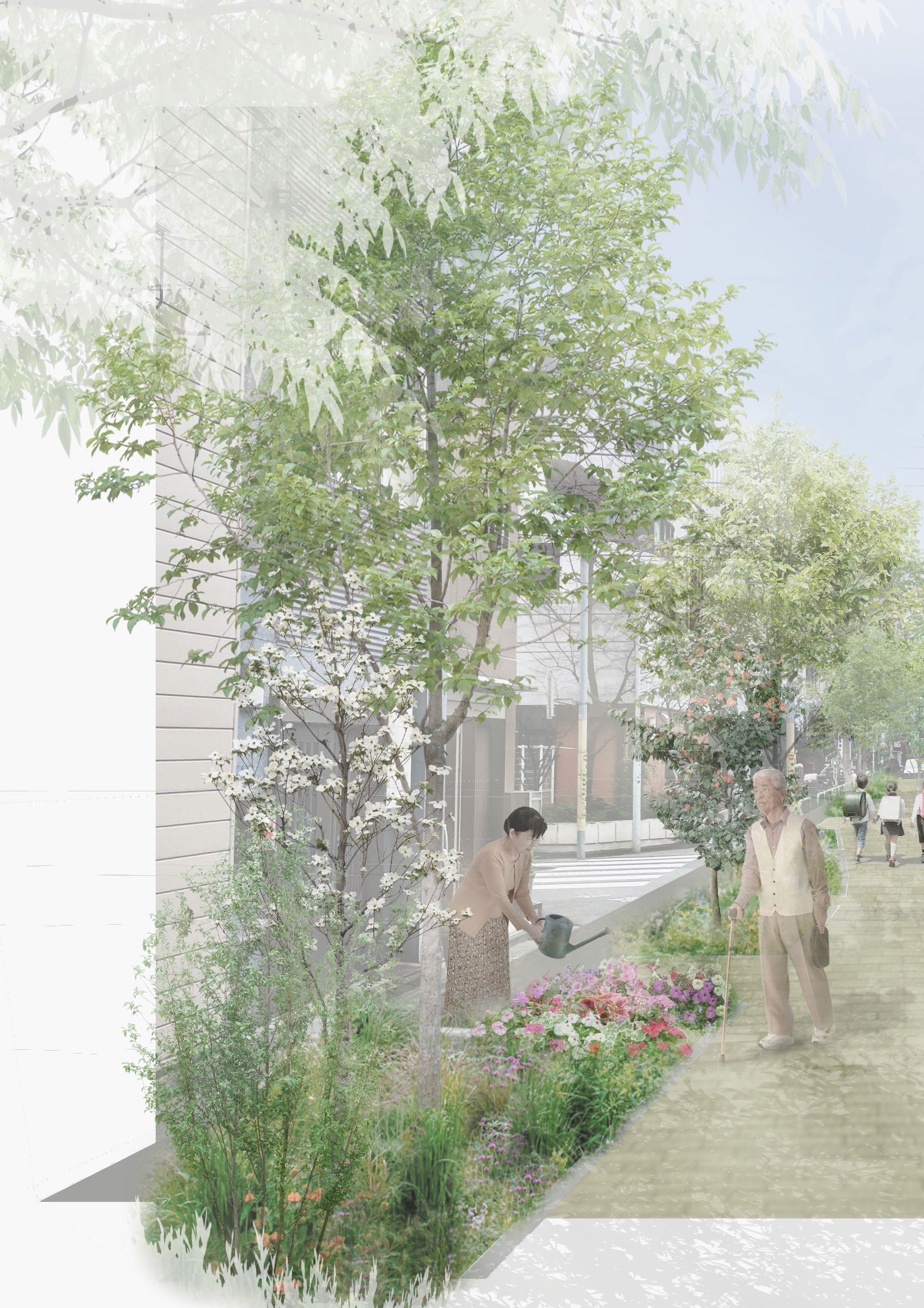 In the central area with a large meandering river, the design embraces the dynamic features of the river. It was found that there is sedimentation inside the curved river from the sedimentation map from the Tokyo government office. The aim is to create a small network of nature within the city by creating an ecotone tidal pocket on the inner side of the river and river forests as stepping stones for living creatures on the opposite outer curve.