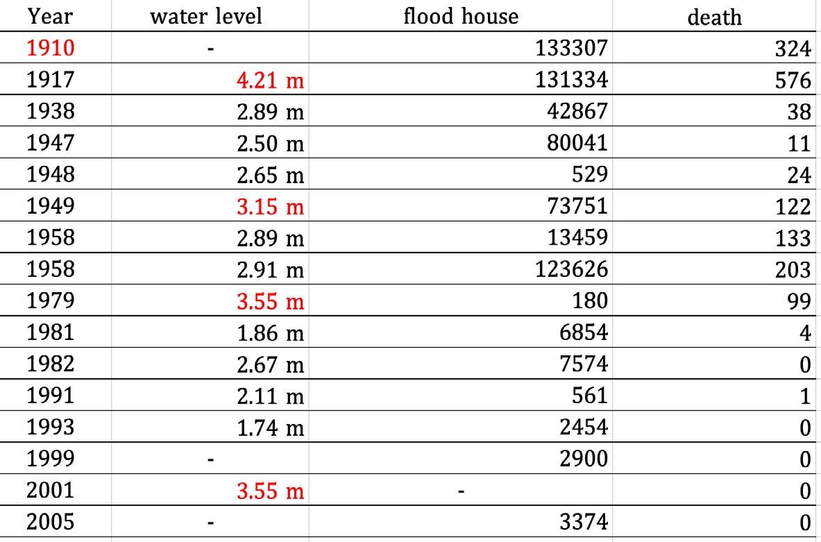 Also, the ground level of the eastern part of Tokyo is lower than that of the west side because it was originally a floodplain of the river. Furthermore, the ground sank below sea level because of pumping a large amount of groundwater for industrial use in history. Therefore, the eastern part of the Sumida River has a significant flood risk if the water overflows.