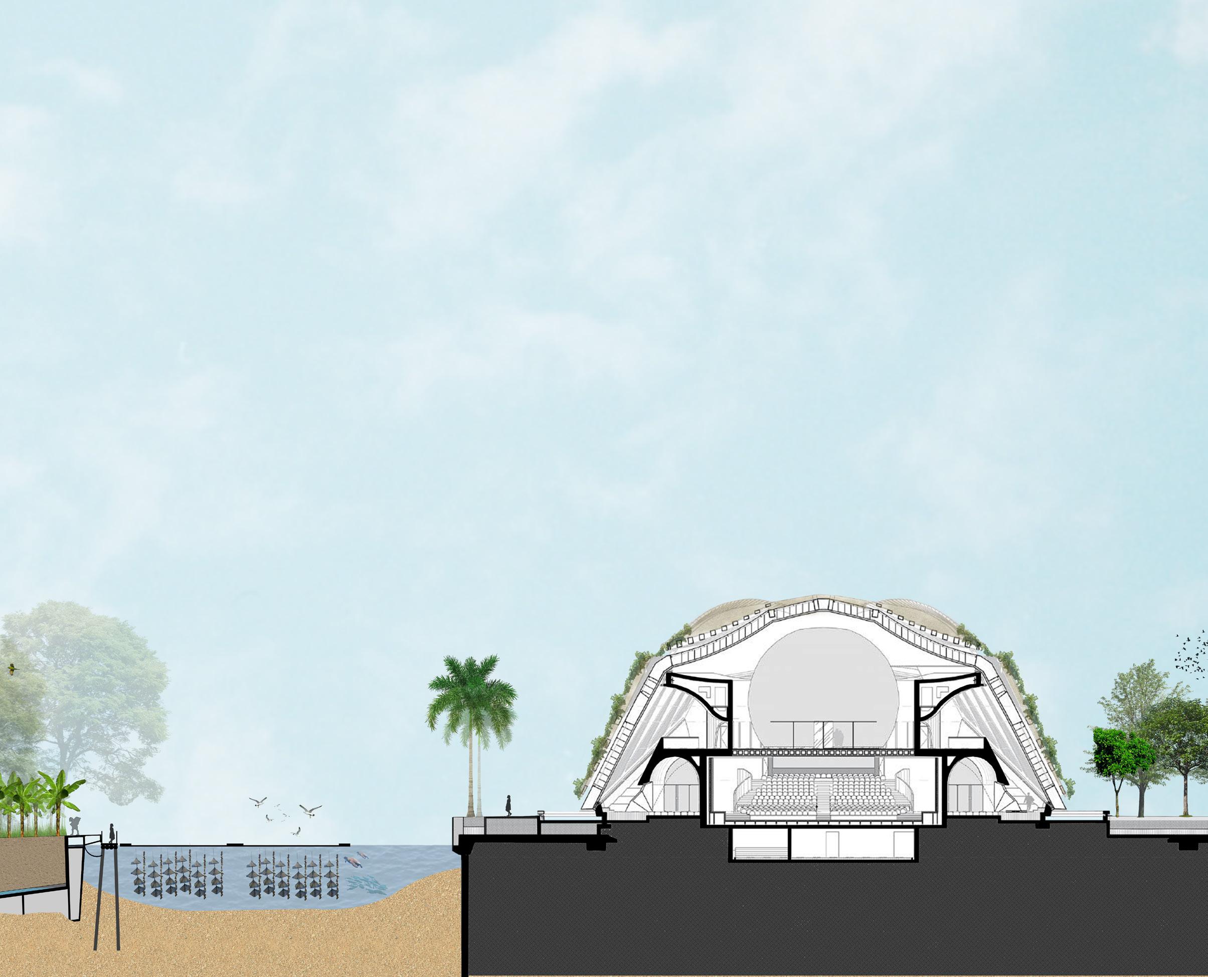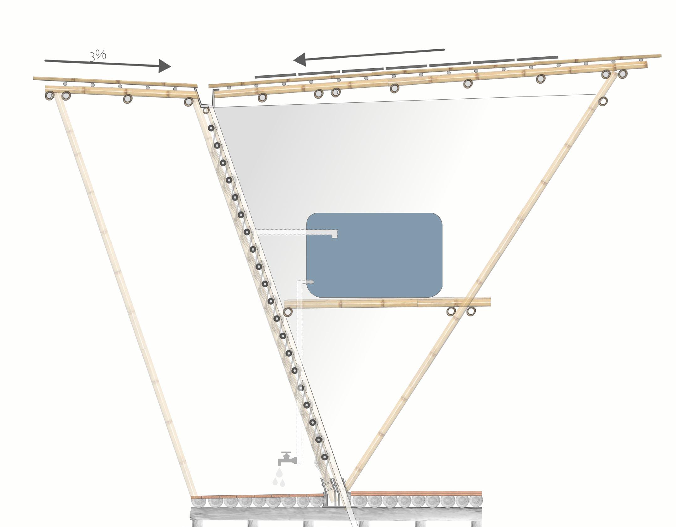 When maintenance is no longer possi ble, and nature takes action, the project will likely sink. The structure will not be garbage for the Guanabara Bay, remem ber that all the material is biodegrad able, and the blue tanks could be easily removed and destined for another use.