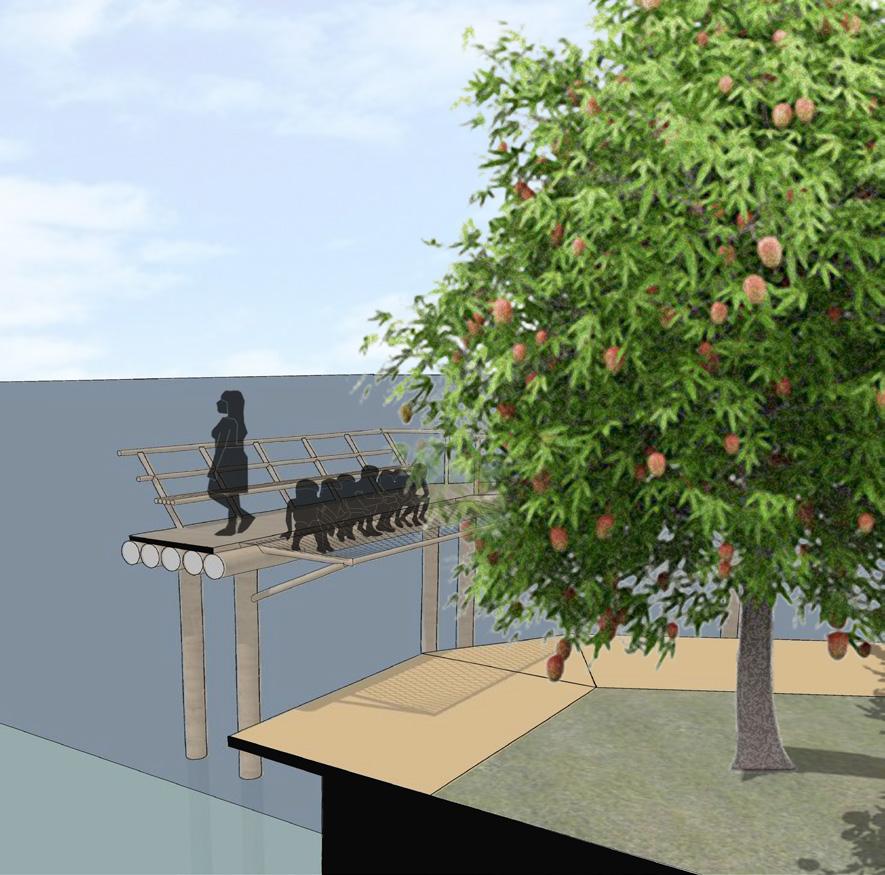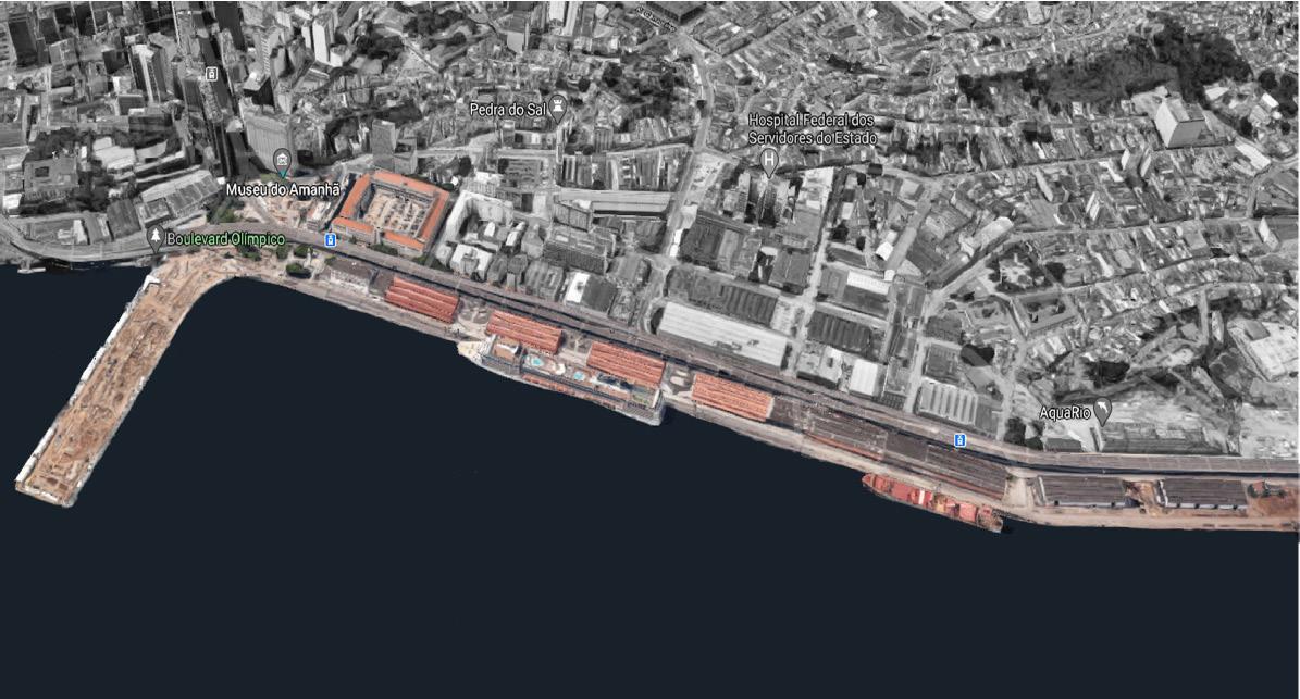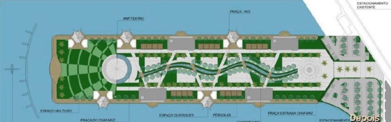Illustration that shows a possibility for this park to expand around the territory of the Museum of Tomorrow, and/ or in other places in Guanabara Bay