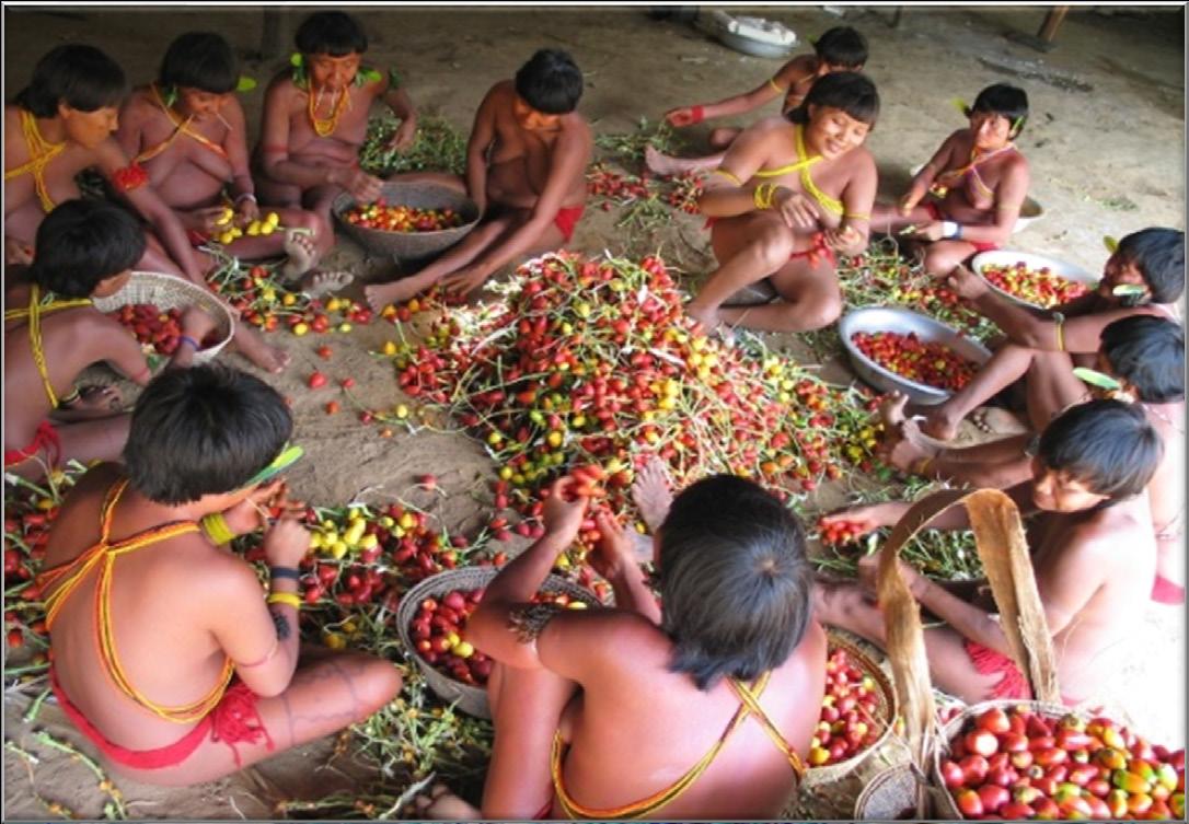 Indigenous people are the forest guard ians, they are the people who inhabit the forest sustainably. They take only what is needed for their survival, keep ing the forest in equilibrium/ balance and protecting the fauna and flora. They have their own way of living, their own rituals and thoughts. They devel oped techniques of constructions and also a way of living, planting their food and medicine. They have lived millen niums in communities and even the tribes that have more contact with “the whites” still live in this way.