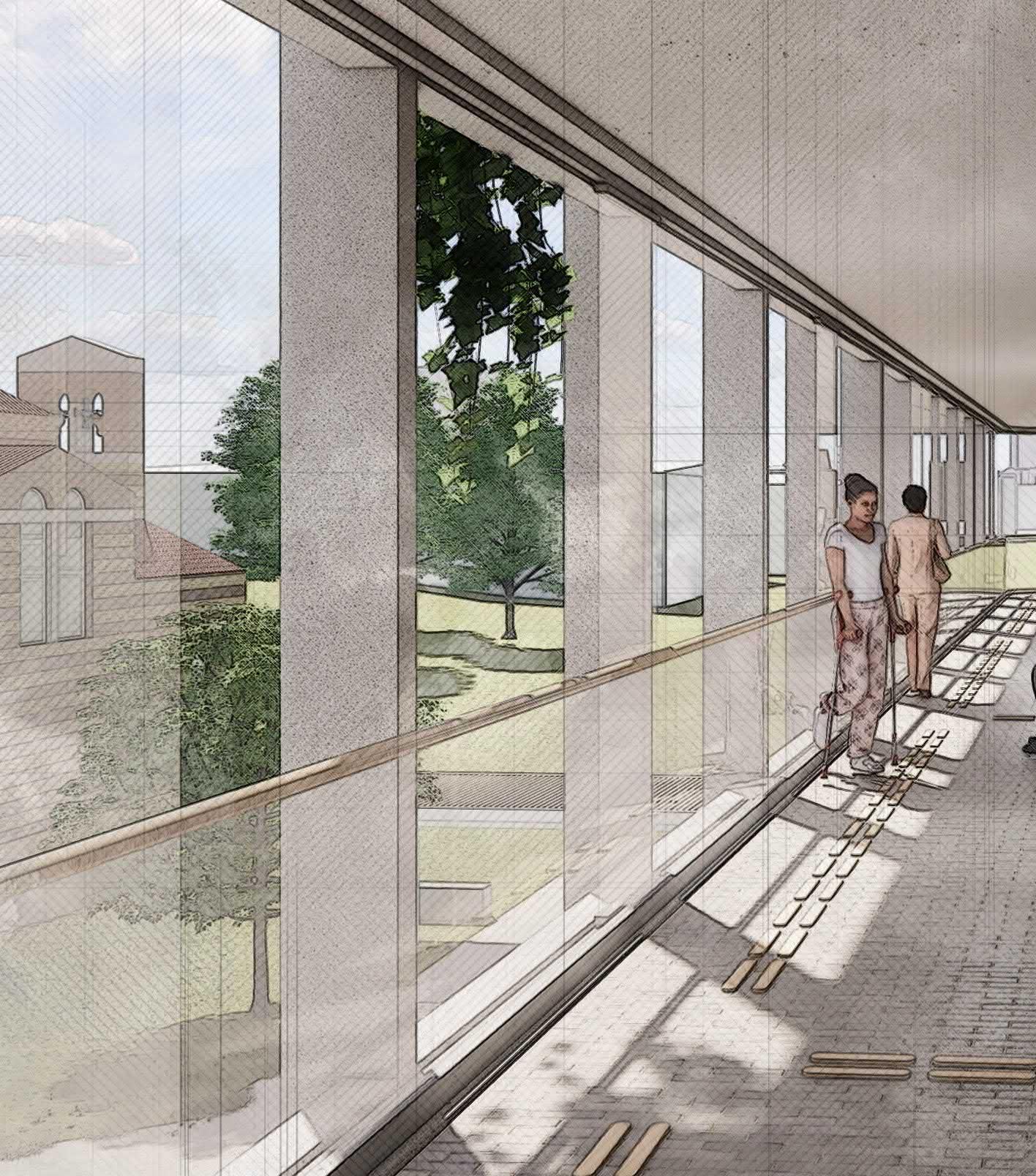 In het project zijn verschillende architectonische methodes onderzocht voor het organiseren, beleven en verbinden van een revalidatiekliniek met zijn context. Een gebouw waar de mogelijkheden van de hoofdgebruikers centraal staan, om door het revalidatieproces heen stap voor stap het afzonderen te verkleinen en de interactie of zichtbaarheid met de maatschappij te versterken.