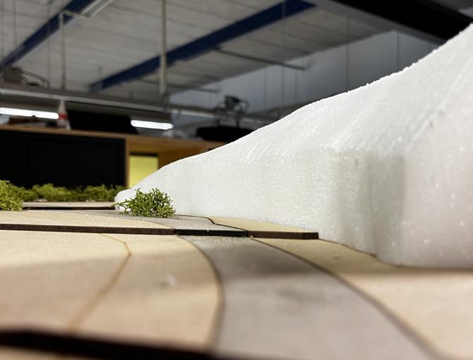 Bij de opzet van het hoofdvolume is er gekeken naar de aansluiting van de bestaande en de nieuwe infrastructuur. Ook is er mede door de schaal gebruik gemaakt van de hoogte binnen het landschap op deze locatie. Daarnaast is het onstaan van de hoofdvorm gefundeerd op basis van historische achtergrond. Het onstaat namelijk op de plek waar de oude boerderij van het erf stond. Als laatste is er ook gekeken naar de lanschappelijke interventie aan de hand van de parkeerplaats en voorzieningen.