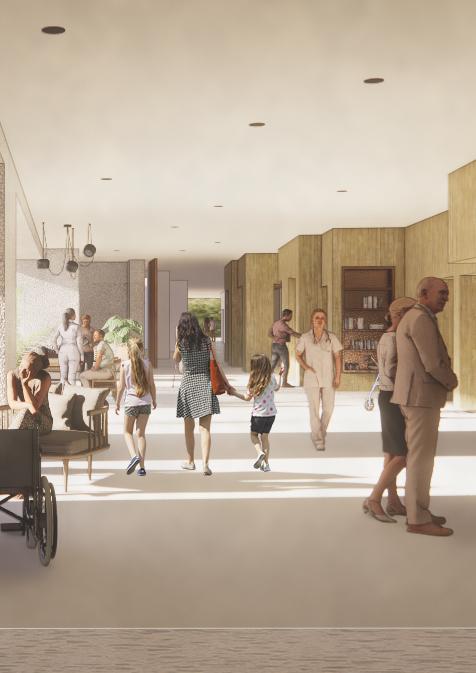 Eenplekindestadwaarjekanverblijven naeenongeluk,tijdensherstelvaneen medischeingreepofhetvolgenvaneen preventieprogramma. Eenomgevingvoordagelijkseroutinemet therapeuten,medici,hetontmoetenvan vrienden,familieenonbekenden. Eendiversgebouwdatfungeertalseen kleinestadineenstad,metpleinen, straten,tuinen,parken,publiekefuncties enprivateverblijfsruimten. Eenplekwaarmensenzoweerklaar gemaaktomvolopvandestadgebruikte kunnenmaken. Eengebouwzondervooringenomenheiden zondercompromissen.Eennoodzaaken eenaanwinstvoorhetstedelijkleven. Opgave 37 CONCEPT