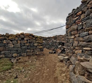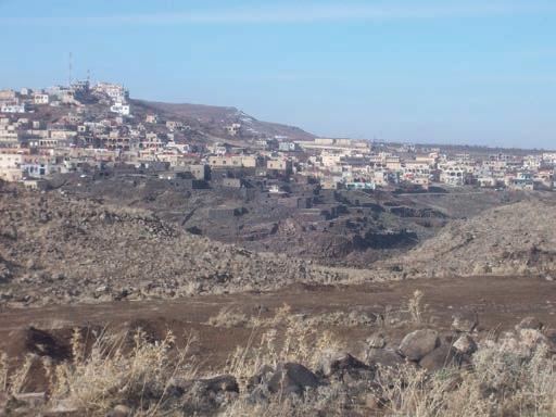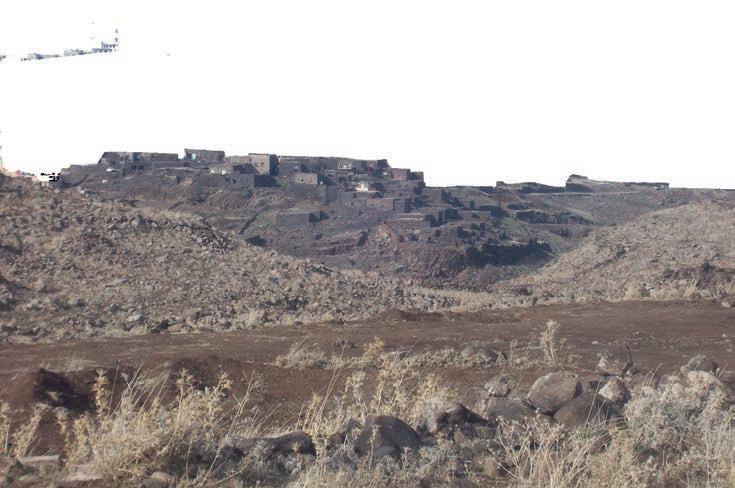 From the edge of the basalt field, the landscape unfolds, revealing a mosaic of villages scattered across the terrain. It’s evident that the local community has been actively reshaping the land, purposefully moving basalt rocks to prepare the ground for farming. The villages seamlessly blend with the basalt backdrop, showcasing a unique partnership between human effort and nature. As these individuals work alongside the resilient basalt, carving out space for agriculture, they share a story of adaptability and resourcefulness, embodying their commitment to sustainable living.