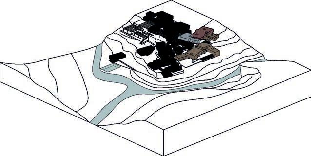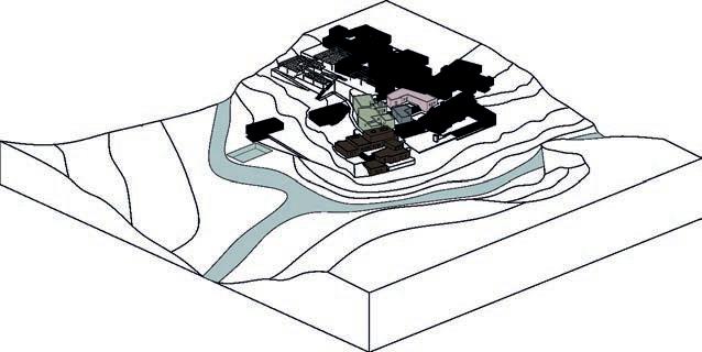 The water zone is directly connected to the valley, where water is present from January until April before it dries up. To provide a safe space for people to learn swimming, I have added an outdoor swimming pool near the valley. Additionally, there will be two houses dedicated to yoga and meditation, situated to offer direct connection to the landscape and an open view from three directions.