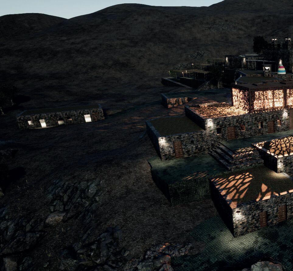 As I mentioned before, I intended to preserve the existing houses as they are and minimize changes as much as possible. The alterations in the schoolhouse include adding a mud layer to the inner cover of the exterior walls. Additionally, the animal space in the corner room will be removed and replaced with a connection between the courtyard on one side and the terraces on the other side. A large skylight will also be added in this area. In front of the middle house, two wind catchers will be added. To further utilize this space, I designed staircases around them, leading to an observation tower. This tower will provide an opportunity to view the entire village and the surrounding landscape. Moreover, the observation tower will serve as the entrance to the village museum, which will feature various exhibition spaces reflecting the village’s history in agriculture, struggles for freedom, and historical photos from the area. The museum will be connected to the outdoor terraces on one side and to a space reflecting the past use of the houses on the other side.