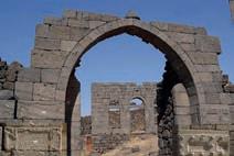“Mashnaqa Arch” or remains of a Byzantine basilica. As-Suwayda city.