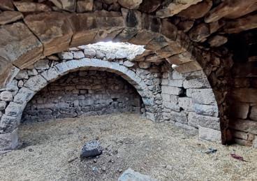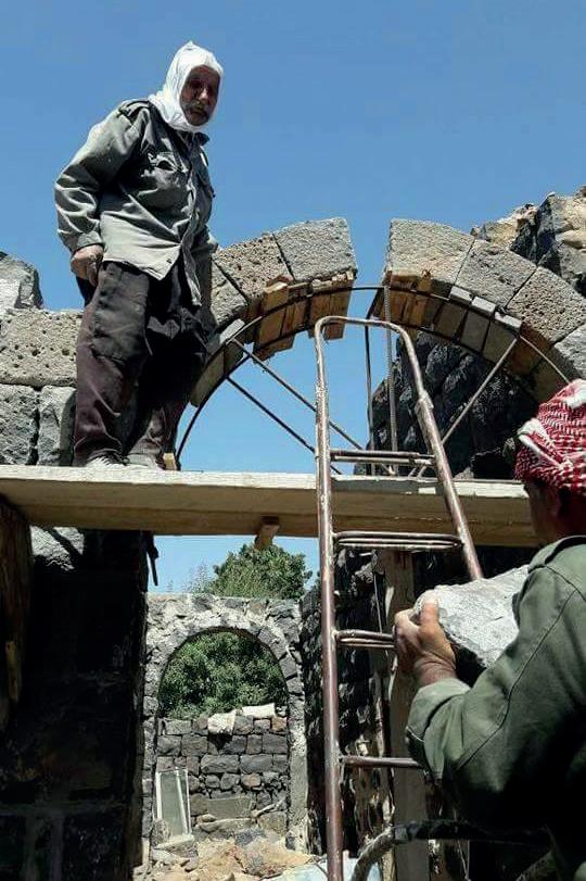 Building with basalt has been a practice known in the south of Syria since the arrival of the first inhabitants. The houses were constructed without mortar, resembling puzzles where each stone carried and supported the others. Walls were erected from massive stones, with widths starting from 50cm. To reduce spans, arches of basalt were built, featuring stones protruding at the top to support main beams, also made from basalt. Above these were secondary beams to support the roof, which was insulated with compacted soil and a green roof on top. In the early days, doors and windows were also crafted from basalt, reflecting a simple, natural, and sustainable construction method. Building these houses was not just a construction project but also a social endeavor, involving the assistance of family, friends, and neighbors.