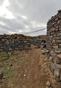 The photos of the existing houses show that part of the upper house has a collapsed roof and wall. The second space is still in good condition, and the third part is probably buried under soil over time. This conclusion is drawn from the fact that the roof of the house is one and a half meters high, and when observing the entire old village, it becomes apparent that the roof of each house serves as a terrace for the upper house, except for this particular part of the house.
