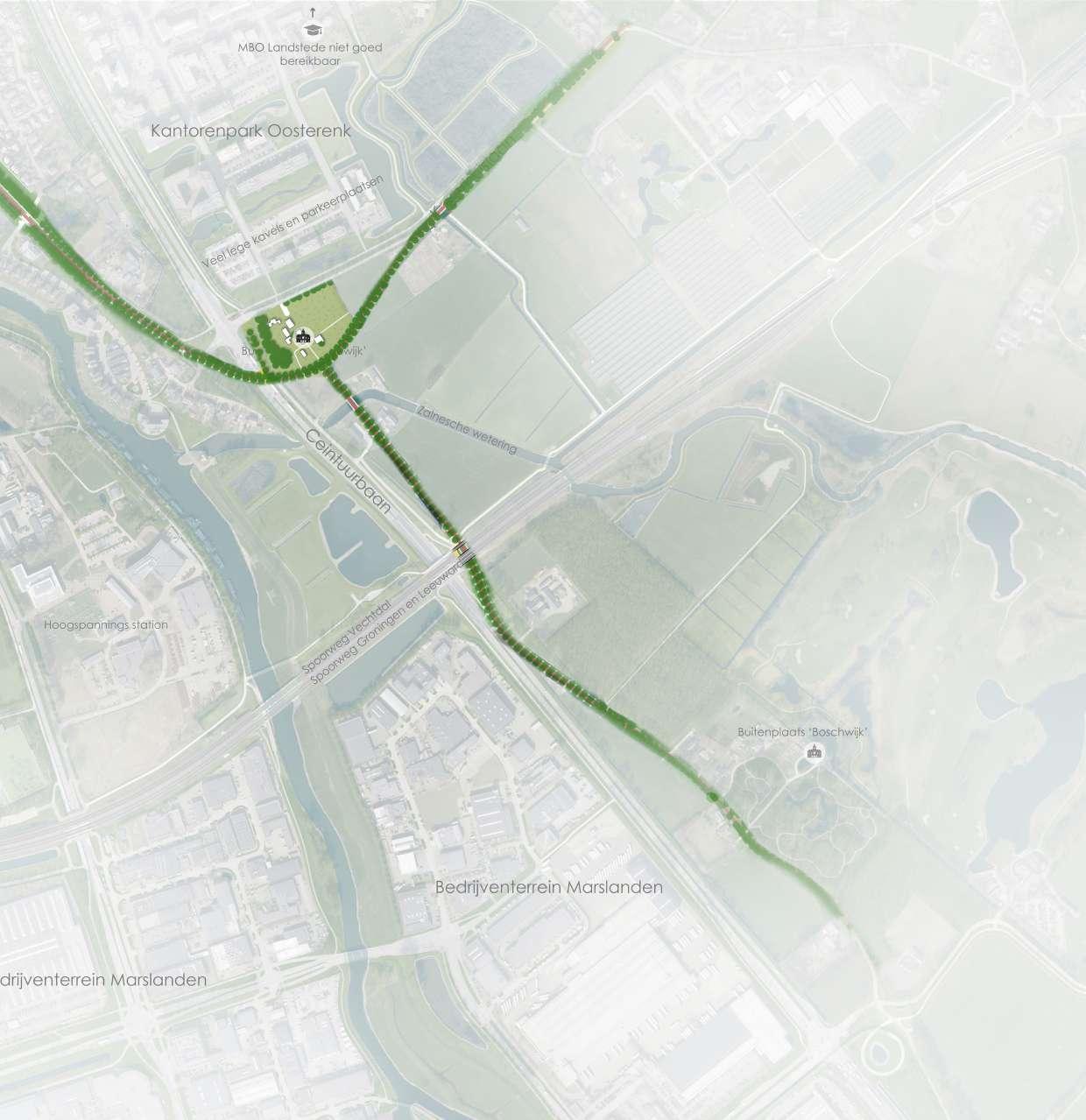 Recreatieve as De Wipstrikkerallee en de Kuyerhuislaan worden aan elkaar gesmeden. De Heinoseweg sluit hier haaks op aan in lijn met de inrit laan van buitenhuis Landwijk. Deze lanen zullen de recreatieve drager voor de voetganger en fietser zijn van het gebied.