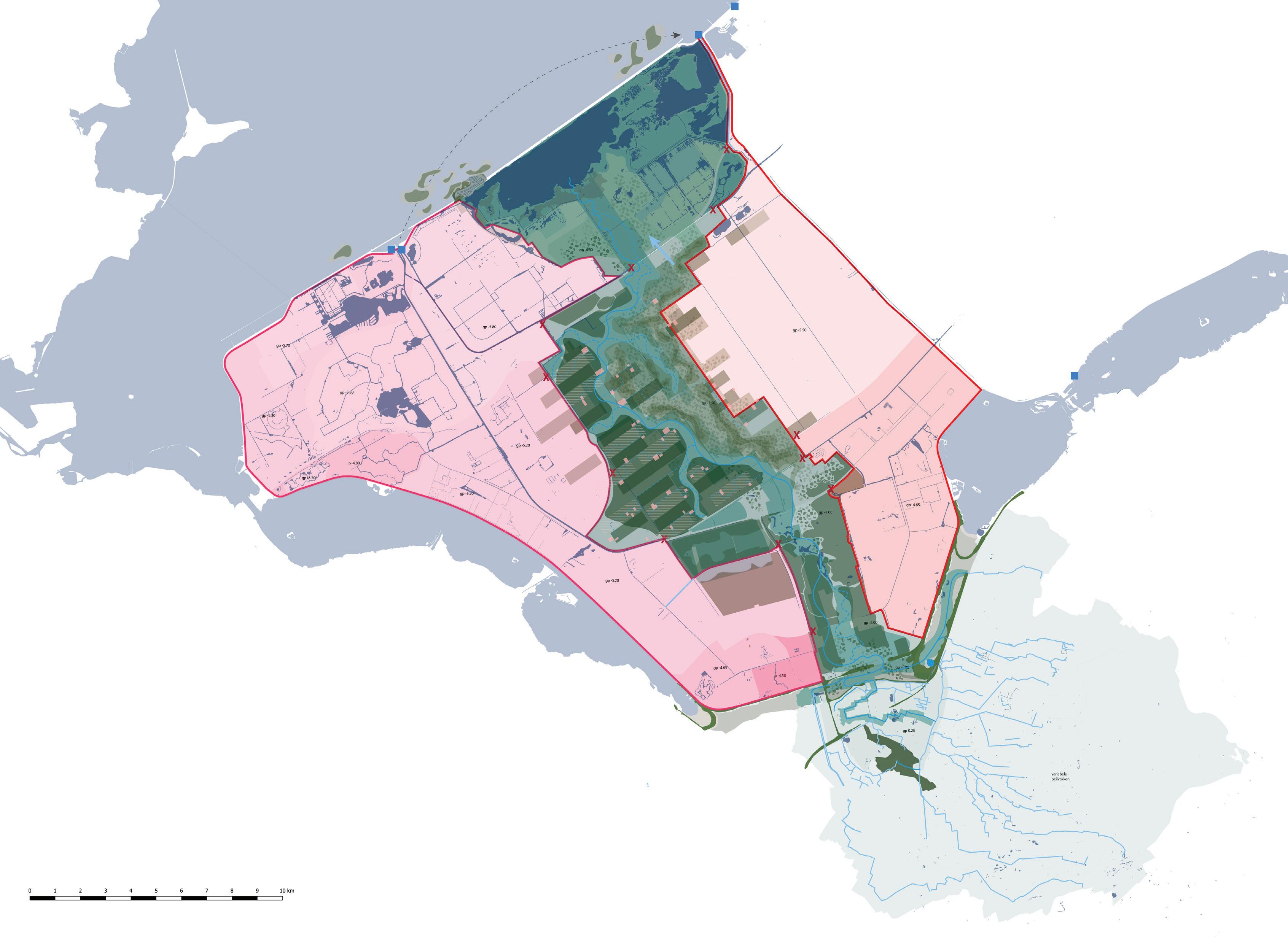 -0.40 tot -0.05 m NAP (geen stijging tot 2050)