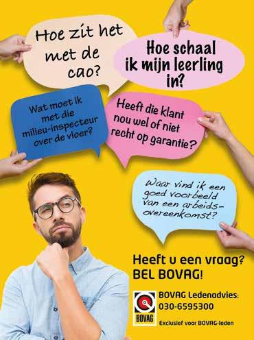 terie van I&W gingen ze ervan uit dat het een feit was. Stond in het hoofdlijnenakkoord, stond in de voorjaarsnota. En toch werd het te elfder ure aangepast. Dat maakt kopers kopschuw. Of neem de zero-emissiezones voor bestelauto’s en vrachtwagens. Is jaren over gesteggeld. BOVAG heeft, samen met andere partijen, gezorgd voor de noodzakelijke uitzonderingen, een haalbare ingroeiperiode en een hardheidsclausule voor als er niet genoeg laadinfra is. Dus: marktkooplui, kermisexploitanten, ze kunnen en mogen allemaal nog gewoon de stad in. Maar wat zegt het nieuwe kabinet vervolgens: we gaan toch kijken naar uitstel. Lekker is dat, voor al die goedwillende, meedenkende en investerende ondernemers. Niet zíj worden zo als uitgangspunt genomen,