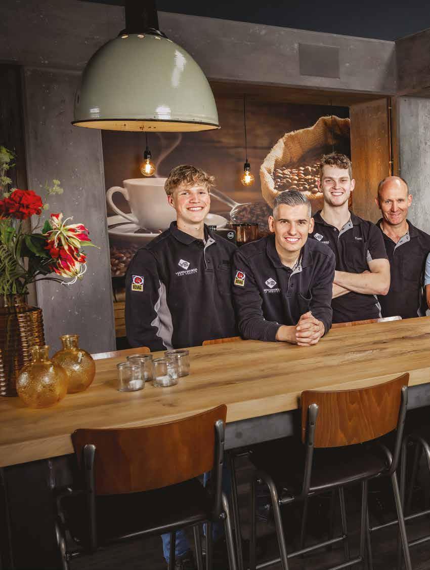 aangaan van partnerschappen, zoals met AutoCrew en onderdelenleverancier Koskamp, die ons up-to-date equipment garanderen en van wie we ook opleidingen afnemen. In mijn personeelscontracten staat: bijscholen is verplicht. Zo blijven mijn jongens gedurende hun gehele loopbaan inzetbaar in de mobiliteitsbranche.”