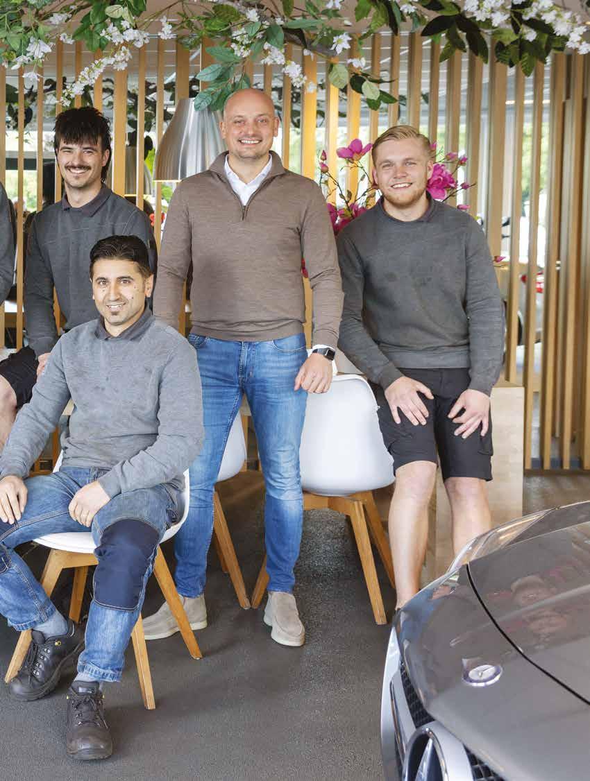 korting, maar haalde dat terug met meerwerk. En zo doe ik het nog. Komt er een auto binnen, om welke reden dan ook, dan lichten we hem helemaal door, tonen de klant foto’s of filmpjes van gevonden gebreken en vragen of we die mogen repareren. Niet alleen om geld te verdienen, wij ontzorgen de klant ook volledig, houden de auto in topconditie. Klant blij, wij blij. Zo bouwde ik snel een grote, trouwe vaste klantenkring op. Ik nam de beste monteurs in dienst, investeerde mijn winst in het beste equipement en gereedschap voor alle merken auto’s.”