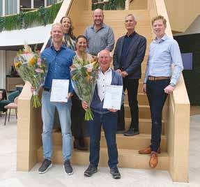 Op de foto linksonder: Richard Oortwijn van Schadecentrum Nijverdal. Naast hem Jan van den Boomen van Vinken Caravans, hij nam het certificaat in ontvangst voor collega Johan Klaus. Herald Goorman van Averesch Campers ontbreekt, hij was verhinderd.