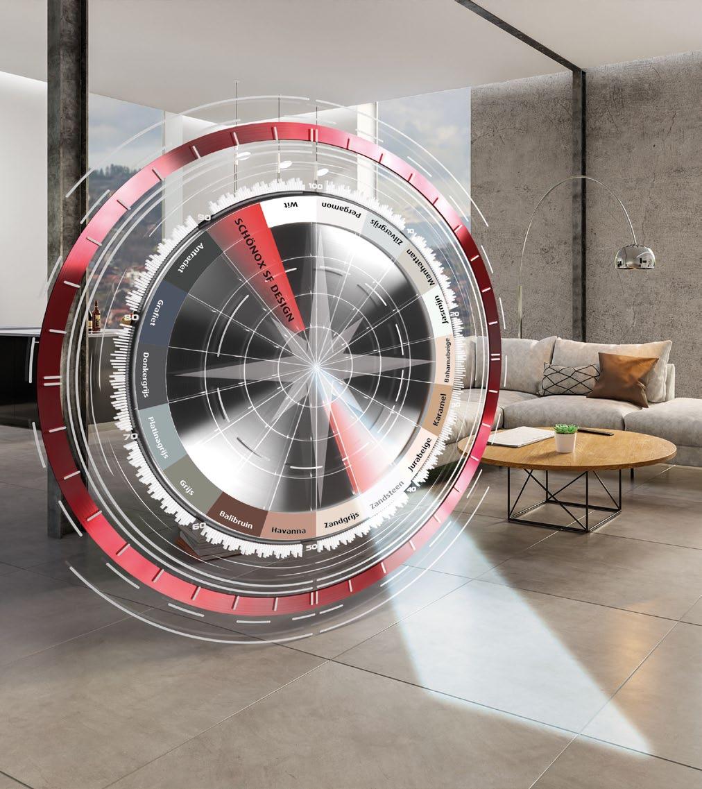 we een jaar of 10 geleden voor het eerst in Bologna de wereld- keramiekbeurs CERSAIE verkenden, was er een flink gat tussen de pracht van de geëxposeerde tegels enerzijds en het werk van de tegelzetter en de toename van de maatschappelijke vraag naar duurzame producten anderzijds. Terwijl in Nederland een merk als Mosa ook toen al lang met circulariteit en hergebruik bezig was. Tien jaar later was die duurzaamheid er nu niet alleen in de woorden en beelden van de traditionele maandag-persconferentie-met-diner, ook op de diverse stands was duurzaamheid hèt onderwerp. Een zelfgekozen opdracht, die niet uitsluitend door de recente gasprijzen was ingegeven: er was immers al eerder veel werk verzet samen met de ISO-standaardiseringsorganisatie bij het opstel len van de nieuwe norm voor ‘sustainability’ van keramische tegels ISO 17889-1. Een norm die (natuurlijk) betrek king heeft op verantwoorde productie en hergebruik plus de ‘footprint’, maar ook op economische (sociale impact, werkgelegenheid, arbeidsomstandigheden, verantwoord en energiezuinig transport) aandachtspunten. En inmiddels voldoen zeer veel Italiaanse tegels aan deze internationale norm, hetgeen van producten uit de ‘goedkope’ landen meestal niet gezegd kan worden. Nu is het natuurlijk aan de markt om dit ook belangrijk te vinden, en aan de wetge vers om deze- en vergelijkbare normen allereerst voor overheids- en semi-overheidsopdrachten als voorwaarde te stellen. Immers, de tijd dat uit Oosterse en ontwikkelingslanden uitsluitend een mindere kwaliteit kwam, ligt groten deels achter ons: hoewel niet iedere Oosterse tegel zijn uiterlijk in kwaliteit waarmaakt, beschikt men inmiddels wel over vergelijkbare machinerie, en ook met de kennis gaat het snel. Al blijft het voor deze landen ‘volgen’ en zijn de tegels ook in hun esthetische vormgeving niet zelden een rip-off van Italiaanse ontwerpen – soms goed getroffen, soms gewoon lelijk… Feit is dat je daarom met een fototoestel op de beurs vaak best een fronsje oogst. En eigenlijk mag er de laatste paar jaar gewoon niet meer gefotografeerd worden… maar we deden het toch.