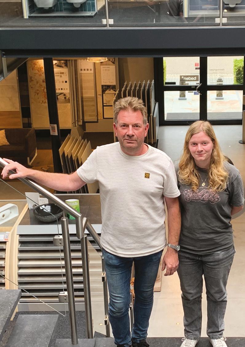 De 17-jarige Sanne knikt, maar zegt er meteen bij niet zelf actief te willen gaan tegelen. “Ik wil later graag het bedrijf leiden en in de showroom helpen bij de verkoop. Ik help nu al in de showroom en kan ook badkamertekeningen maken. Maar ik wil eerst een bbl-opleiding Timmeren volgen zodat ik vier dagen per week bij een ander bedrijf kan werken en een dag naar school ga. Daar wil ik dit jaar nog beginnen en na die opleiding kijken we verder. Maar uiteindelijk wil ik het bedrijf wel overnemen.”