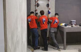 Werkt Raaijmakers vooral veel voor aannemers in de regio tussen Eindhoven en Tilburg, in het verleden hebben de tegelzetters van de Gemertse specialist ook in Engeland en Frankrijk tegels gelijmd. “Een van de aannemers waarvoor ik werk, had een klant in Engeland en die wilde per se dat wij het werk zouden uitvoeren. Het kwam neer op een periode van vier weken waarin onze medewerkers van maandag tot donderdagavond zouden werken en vrijdags weer naar huis kwamen om thuis het weekend door te brengen. Ik heb de medewerkers toen gevraagd wie dat eventueel zou willen doen en er waren al snel vier collega’s die de klus graag wilden doen. Zij hebben het werk uiteindelijk uitgevoerd.”