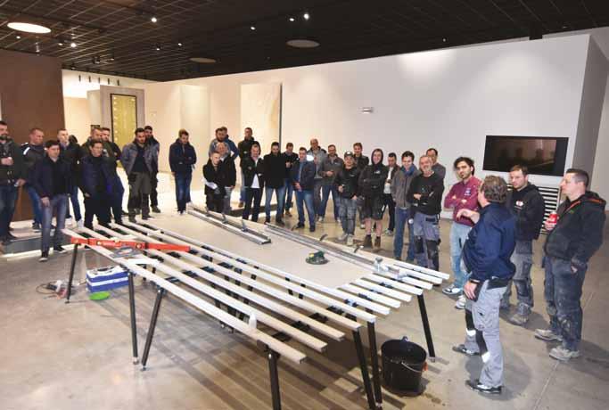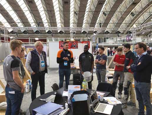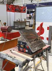 Minstens zo trots zegt Gerard te zijn enkele geassocieerde leden van bovatin, die weer gereedschappen, tegels en materialen beschikbaar hebben gesteld voor de finalewedstrijden. “De jongens werken met de gereedschappen van Rubi en tegels van Mosa. De ondergronden waarop ze tegelen zijn Wedi-platen en Schlüter systems heeft de strippen geleverd. Lijmen en voegen zijn door Mapei beschikbaar gesteld. Geweldig om te zien dat we ook voor deze dagen weer kunnen rekenen op onze geassocieerde leden!”