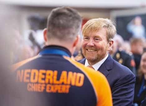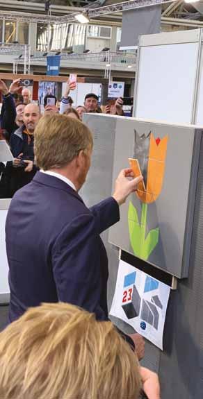 Rond een uur of twee wordt het drukker en drukker rondom het finalepodium van de tegelzetters. Veel bezoekers weten dat koning Willem Alexander deze dag aanwezig is tijdens Skills The Finals en aan het begin van de middag staat een bezoekje aan de jonge tegelzetters op het programma. Speciaal voor de majesteit is een hoek van het podium gereserveerd waarop aan een wand een tulp is getegeld waarvan de oranje bloem nog moet worden afgemaakt. Een mooie gelegenheid voor de koning om zijn tegeltalenten te tonen.