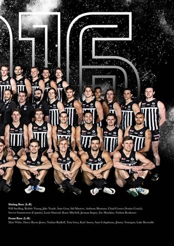 Sitting Row (L-R) Will Snelling, Robbie Young, Jake Neade, Sam Gray, Sid Masters, Anthony Biemans, Chad Cornes (Senior Coach), Steven Summerton (Captain), Louis Sharrad, Kane Mitchell, Jarman Impey, Zac Hawkins, Nathan Krakouer Front Row (L-R) Matt White, Darcy Byrne-Jones, Nathan Rudloff, Tom Gray, Karl Amon, Sam Colquhoun, Jimmy Toumpas, Luke Reynolds