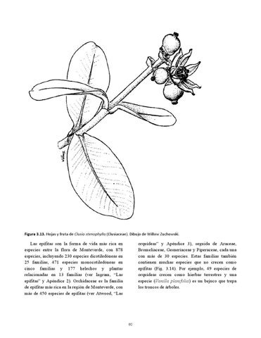 orquídeas” y Apéndice 3), seguida de Araceae, Bromeliaceae, Gesneriaceae y Piperaceae, cada una con más de 30 especies. Estas familias también contienen muchas especies que no crecen como epífitas (Fig. 3.14). Por ejemplo, 49 especies de orquídeas crecen como hierbas terrestres y una especie (Vanilla planifolia) es un bejuco que trepa los troncos de árboles.