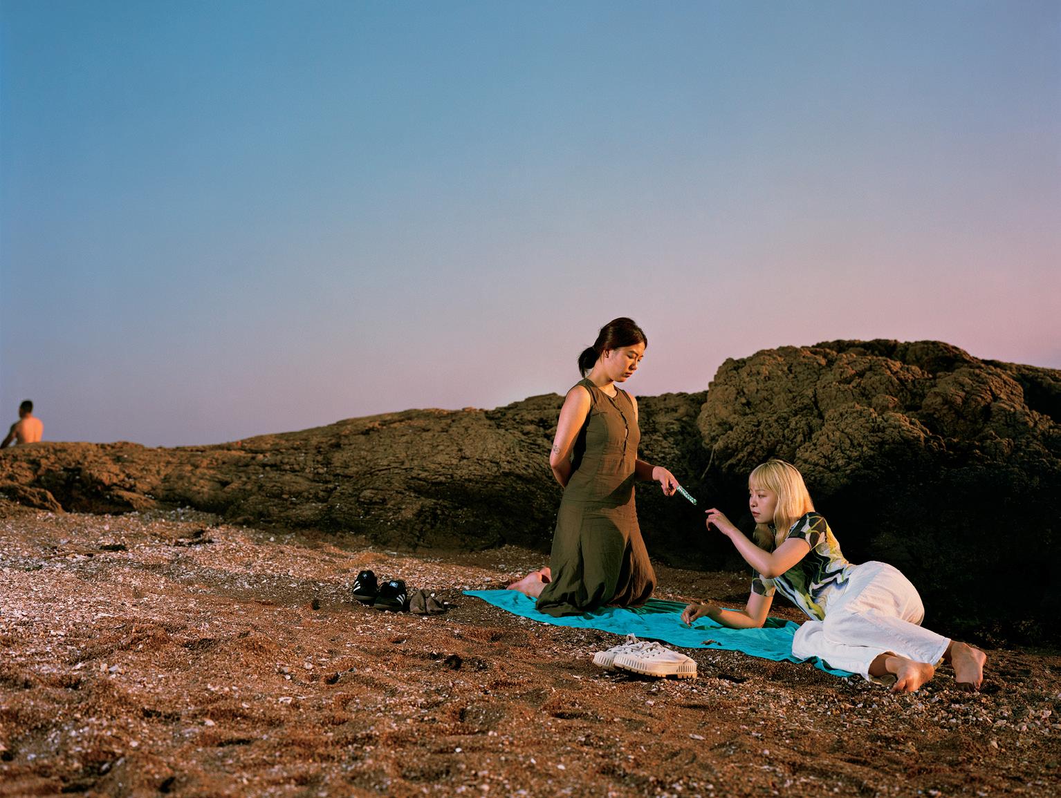 memory, race, and identity. Members of the collaborative were intrigued by Finger Trap, a photograph Lew made on a beach in Connecticut while earning his MFA in photography from Yale University’s School of Art, and recommended it for purchase. In the image, one young woman attempts to lure another into a “Chinese finger trap.” Lew’s fascination with the game stemmed from the fact that, despite its name, it is likely not of Chinese origin. Rather, it emerged in Europe and the United States in the late nineteenth and early twentieth centuries, with the name first appearing in a 1953 newspaper advertisement. To Lew, the name exemplifies how Asian culture has been misrepresented in Western society, even in obscure and seemingly innocuous ways.