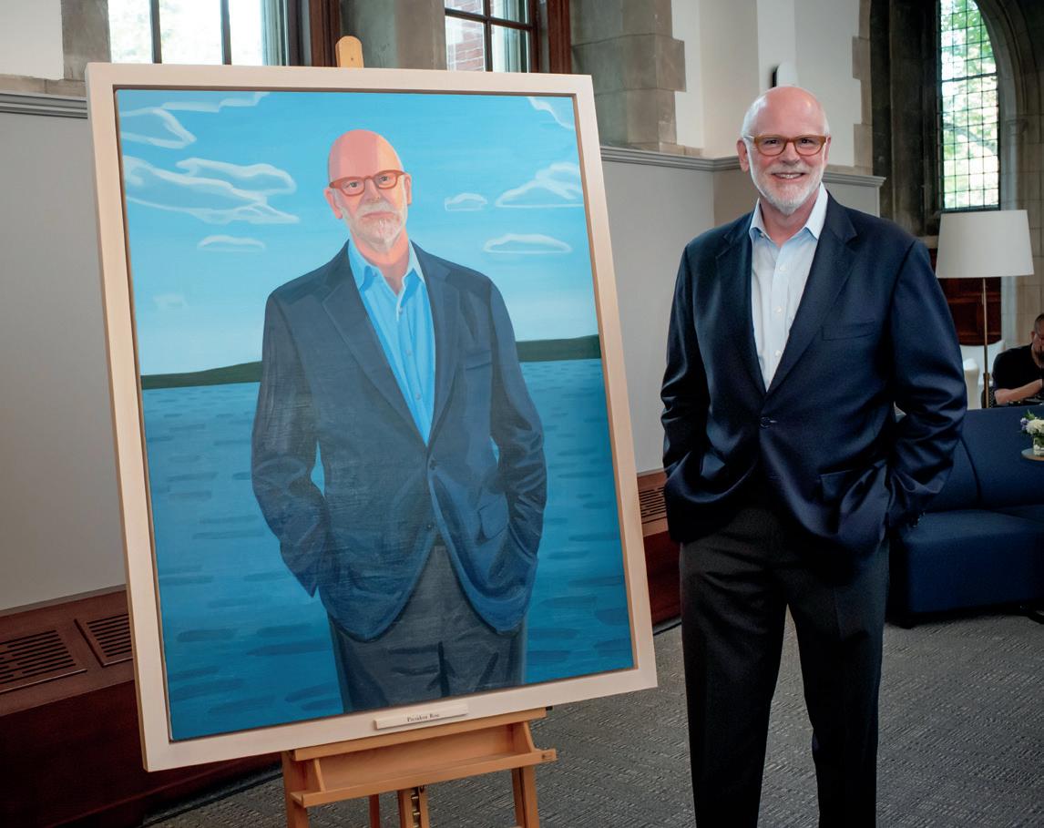 15 A Rose in Blue: President emeritus Clayton Rose returned to campus to join artist Lanie Wurzel and President Safa Zaki to unveil the newest Bowdoin presidential portrait.