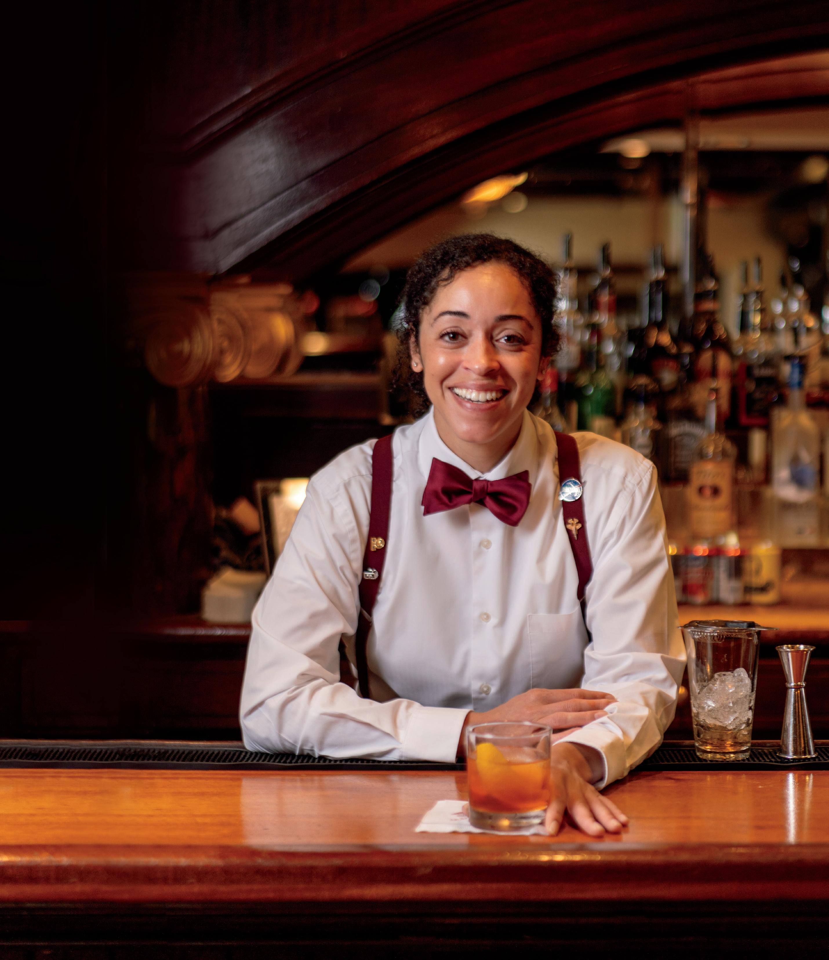 Andrea Weeks ’03 tends bar at Washington, DC’s oldest saloon, Old Ebbitt Grill, founded in 1856.