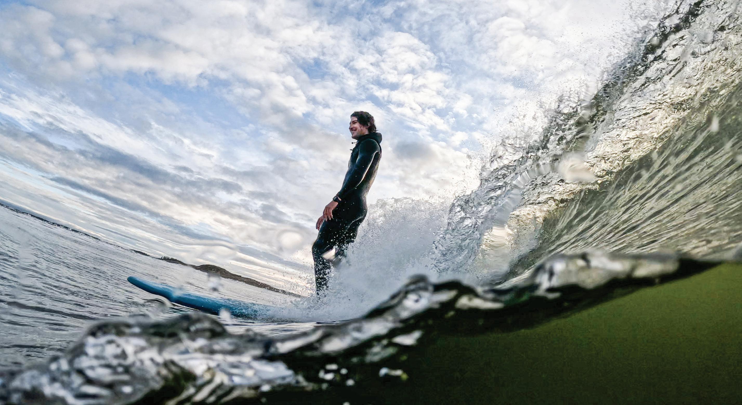 In his story about Bowdoin surfers over generations, writer, recent grad, and surfer Chris Ritter ’21 describes what happens in the cold Maine waters: a sense of being both a part of and apart from the world, in a moving meditation built on taking, receiving, and riding the waves.