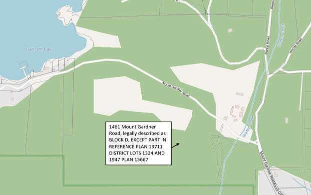 ADevelopmentVariancePermitapplicationhasbeen submittedfor1461MountGardnerRoad(shownonmap)to increasethemaximumallowablelotcoverageaswellasthe maximumallowablesizeofadetachedsecondarysuite