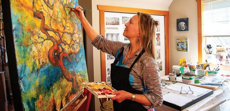 Lastyear’sinaugural Artinthe Garden, hostedbyDougElliottand Owen Plowman at their home,featuredworks fromaround 20Bowen artists.Guests walk the garden –whichinDougand Owen’s case,inaddition to traditional flowerand plantdisplays alsocontains aclassic redtelephone box –and consider pieces whichmay be right for their homes or as gifts.Lastyearmore than$12,000 worthofart wassold, which allowedfor $6,000 to be donated to the BowenIsland Conservancyatthe endof the night.