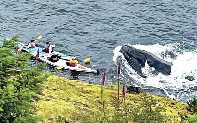 Kayakers on BowenIsland hadavery closeand potentiallydangerous encounterwith ahumpbackwhale last month areminder that the whales are focusedonfeedingand often obliviousto their surroundings