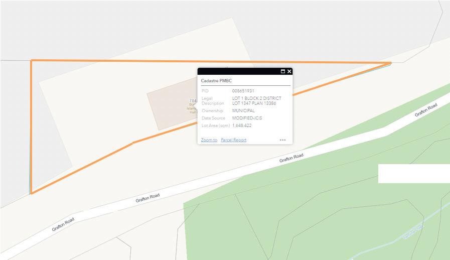 784GraftonRoadisownedbytheMunicipality.Thelegaldescription isPID:008-651-931LOT1BLOCK2DISTRICTLOT1347PLAN13386. Thepropertyisshowninorangeoutlineonthemapbelow.