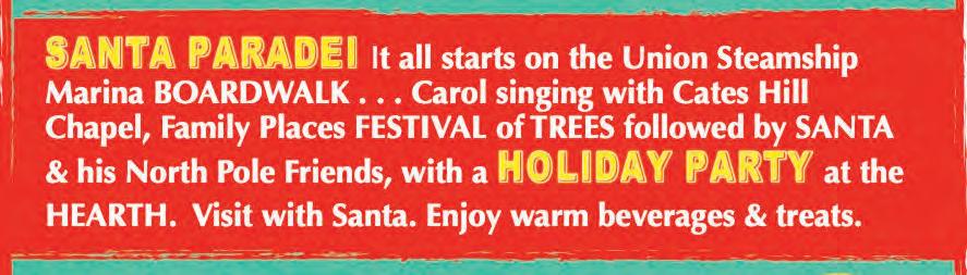 S anta Parade on the boardwalk, Carol s inging and live Nativity, Letters to Santa a nd cookie decorating, Festival of Trees a nd Snug Cove Light Up, and a party with Santa at the Hearth!