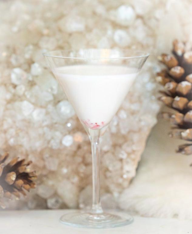 Garnish with a little crushed candy cane that will settle nicely in the bottom. Makes 2 martinis.