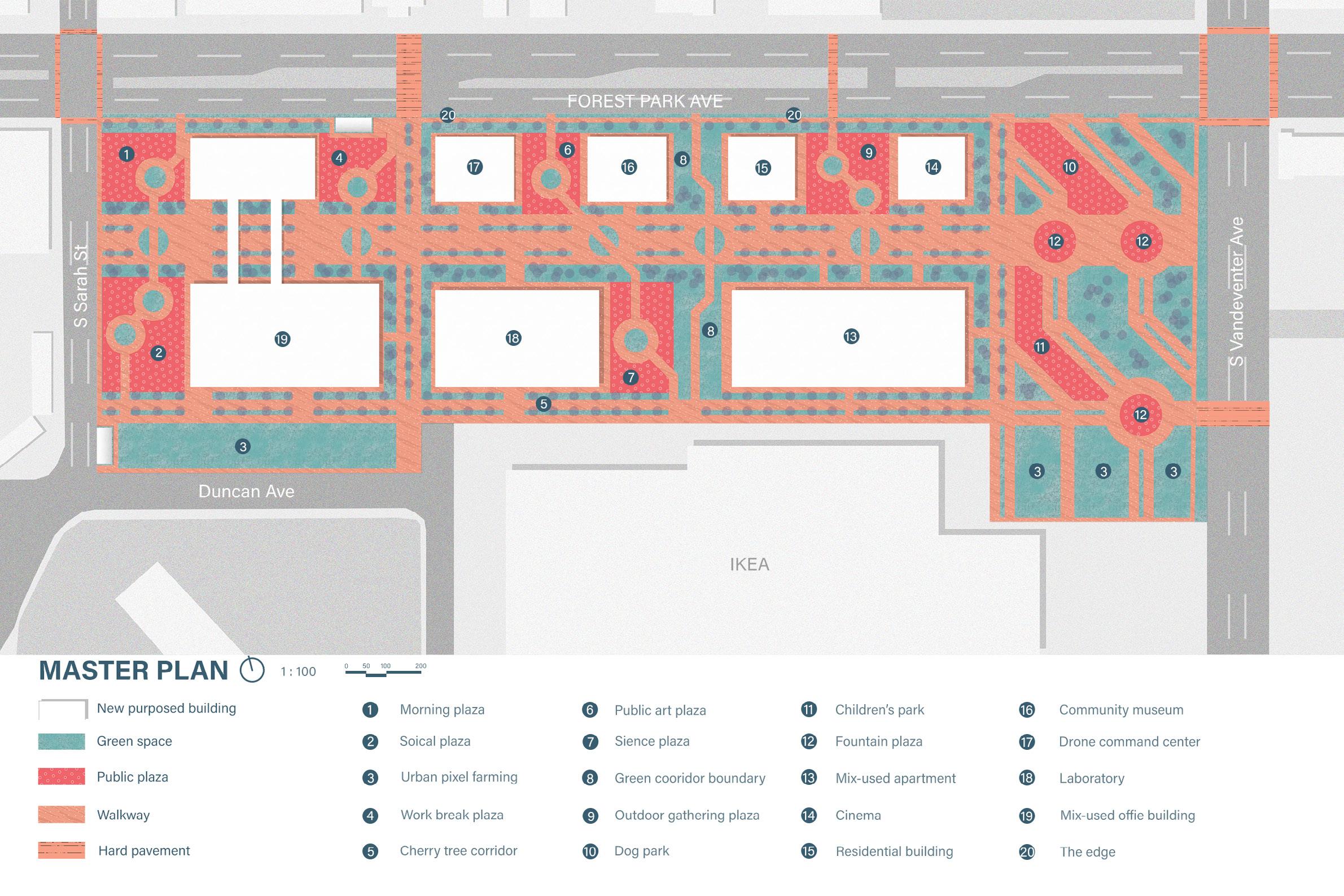 The Hodiamont Track crosses through seven neighborhoods along the Delmar Blvd in north St.louis, which are mostly occupied by African American working class. The track has been once a very active transportation corridor, connecting these once prosperous neighborhoods. But today, the tracks are no longer in use and these neighborhoods are in severe decline, known as an attractor for illegal activities, such as illegal dumping or place of serious crime. The fountain park community as one of the seven neighborhoods used to be a place that filled with history and honor. We are digging out the hidden values here and use that as a base to imagine a new possibility.