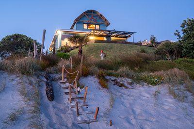 This compact yet surprisingly spacious fibrolite bach, built in the 1960s, occupies a prized beachfront corner site at the end of ID #4835861
