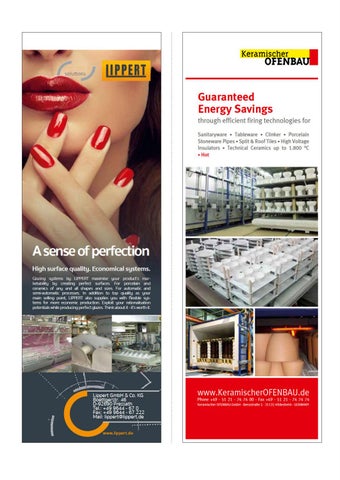 A s e ns e of p erf ecti o n Hi g h s urf a c e q u alit y. E c o n o mi c al s y st e m s. Gl azi n g s yst e ms b y LI P P E R T m a xi mis e y o ur pr o d u ct’s m ar k et a bilit y b y cr e ati n g p erf e ct s urf a c es. F or p orc el ai n a n d c er a mi cs of a n y a n d all s h a p es a n d siz es. F or a ut o m ati c a n d s e mi- a ut o m ati c pr o c ess es. I n a d diti o n t o t o p q u alit y as y o ur m ai n s elli n g p oi nt, LI P P E R T als o s u p pli es y o u wit h fl e xi bl e s ys t e ms f or m or e e c o n o mi c pr o d u cti o n. E x pl oit y o ur r ati o n alis ati o n p ot e nti als w hil e pr o d u ci n g p erf e ct gl az es. T hi n k a b o ut it - it‘s w ort h it.