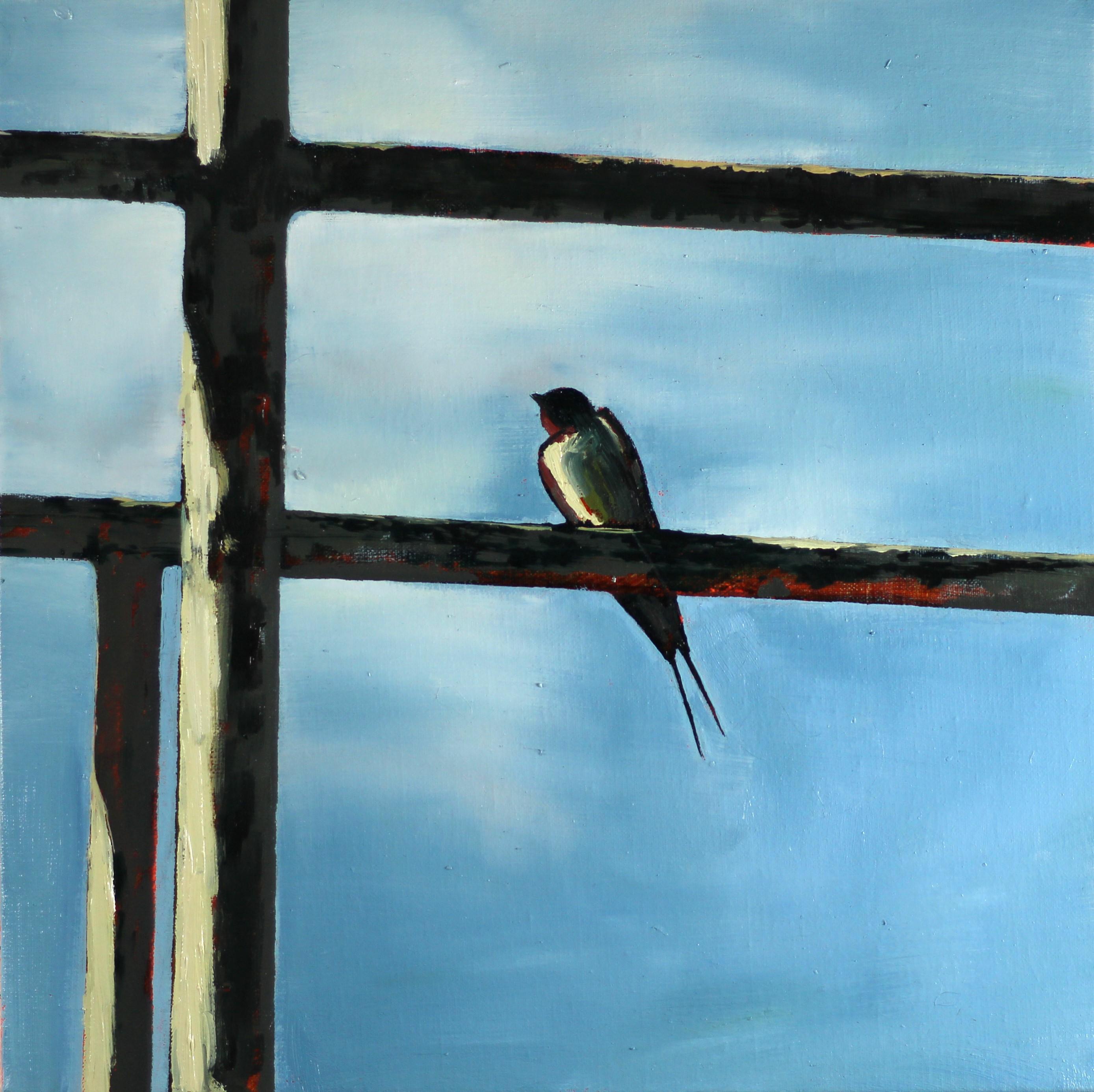 Joseph Davey. ‘Rusty Railings, Sun (and a Swallow)’ Oils on Linen. 35 x 35cm. £650