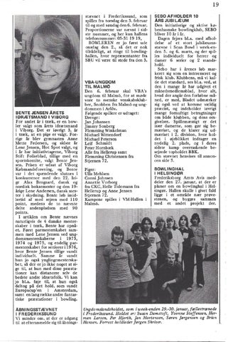 stævnet i Frederikssund, som spilles fra torsdag den 3. februar til og med søndag den 6. februar. Proportionerne var nævnt i sidste nummer, og her kun hallens telefonnummer: 03-31 19 19, BOWLEREN er jo først ude onsdag den 2., så det er nok tilrådeligt, at ringe til bowlinghallen, hvor repræsentanter fra SB U vil være til stede fra den 3.