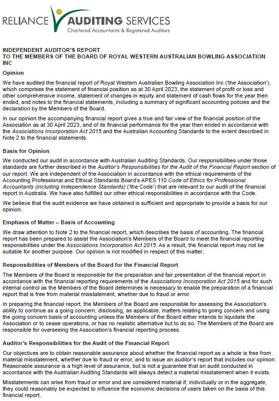 Our charter at BWA is to Promote, Develop and Foster the game of bowls and we continued on with this during the year We expanded our live streaming of Country Round Robins - Men from Denison BC and Ladies from Halls Head BC This was enabled by generous sponsorship from the CBH Group and Liquor Traders Australia. This was added to the Country Week finals (AFGRI), State Singles Finals and Metro Pennant Finals (Professionals Real Estate Group) The numbers watching are easily justifying our financial commitment and exposing the sport and our Sponsors to all corners of the globe