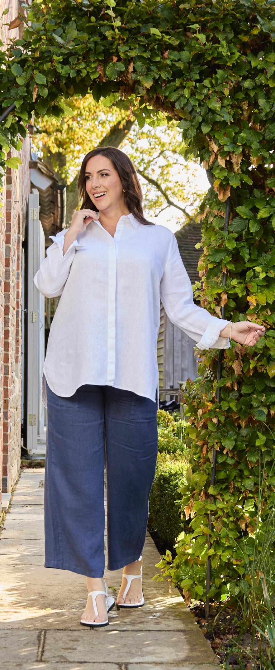 Cathy Linen Shirt £65 navy tulip One Size Left Arielle Linen Vest £40 white Sizes 14 to 28