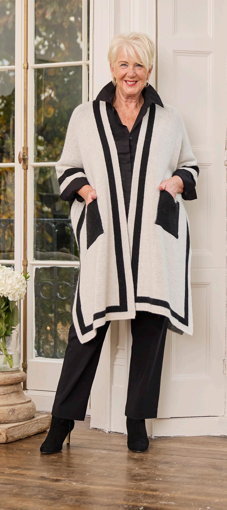 Athena Knitted Poncho £60 black/ecru Sizes 14 to 24