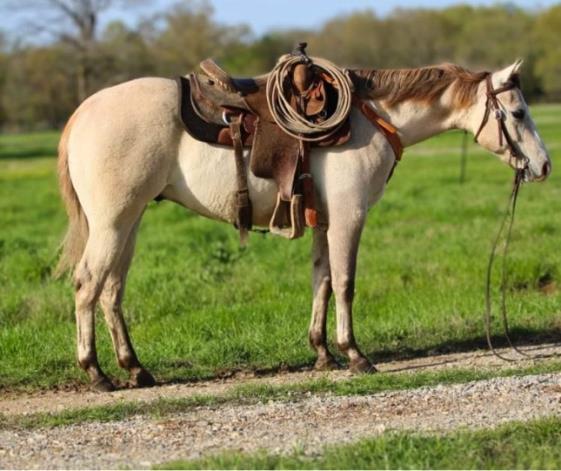 Hip # 8 Cash Remind Aces is a yearling red dun gelding by Cs Cash Remind and out of Tee Full Of Aces. CS Cash Remind is one of our reference sires from the CS Ranch who is the grandson of Letters Reminder he is by Docs J Jay a NCHA money earner and 13 AQHA points. Sire of 79 RGP money earners, 66 AQHA point earners. This gelding checks all the boxes- color, confirmation, and pedigree. He would excel in roping, or ranch working. Take him home train him and put him to work! Ranching Heritage Eligible.