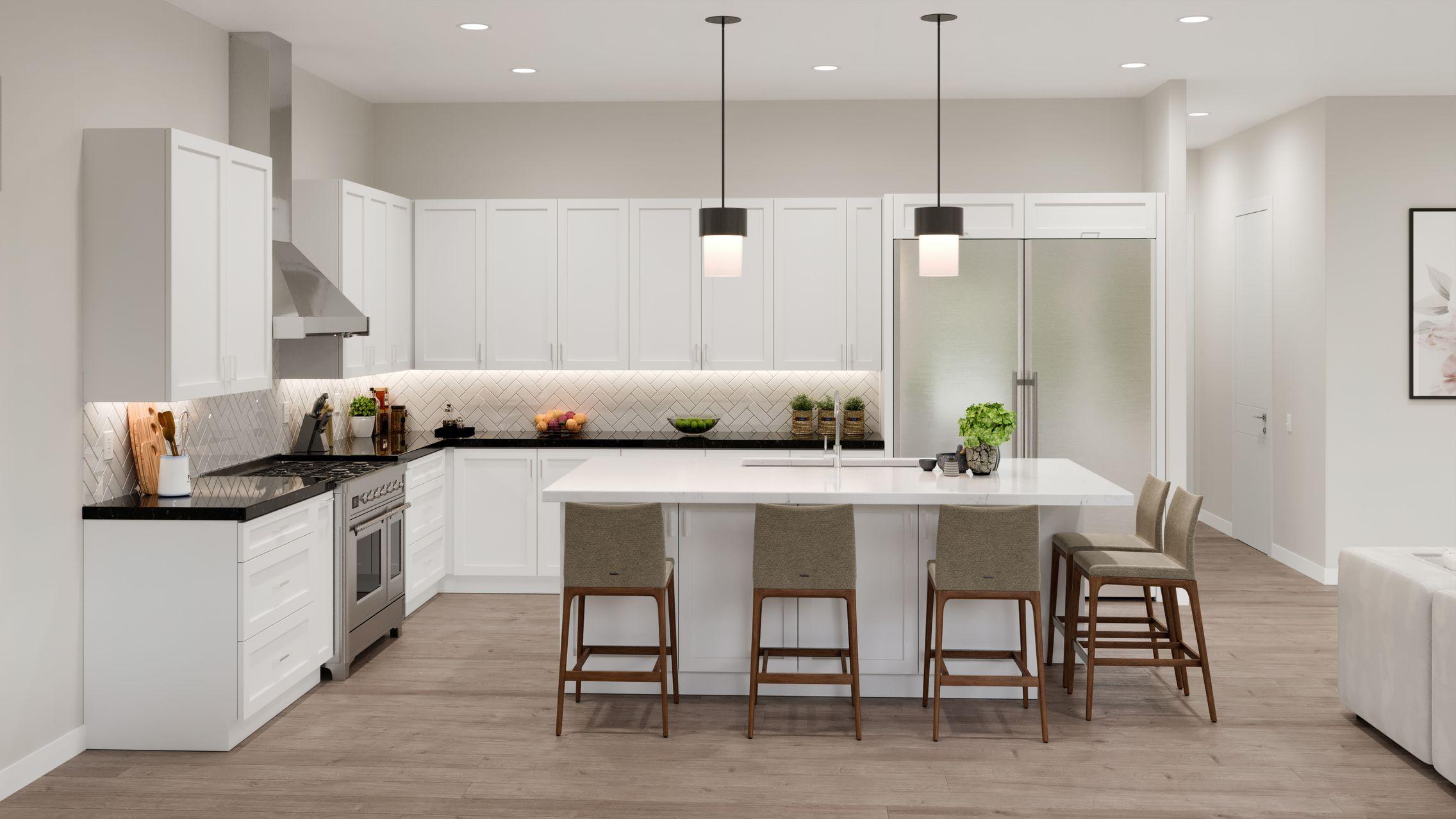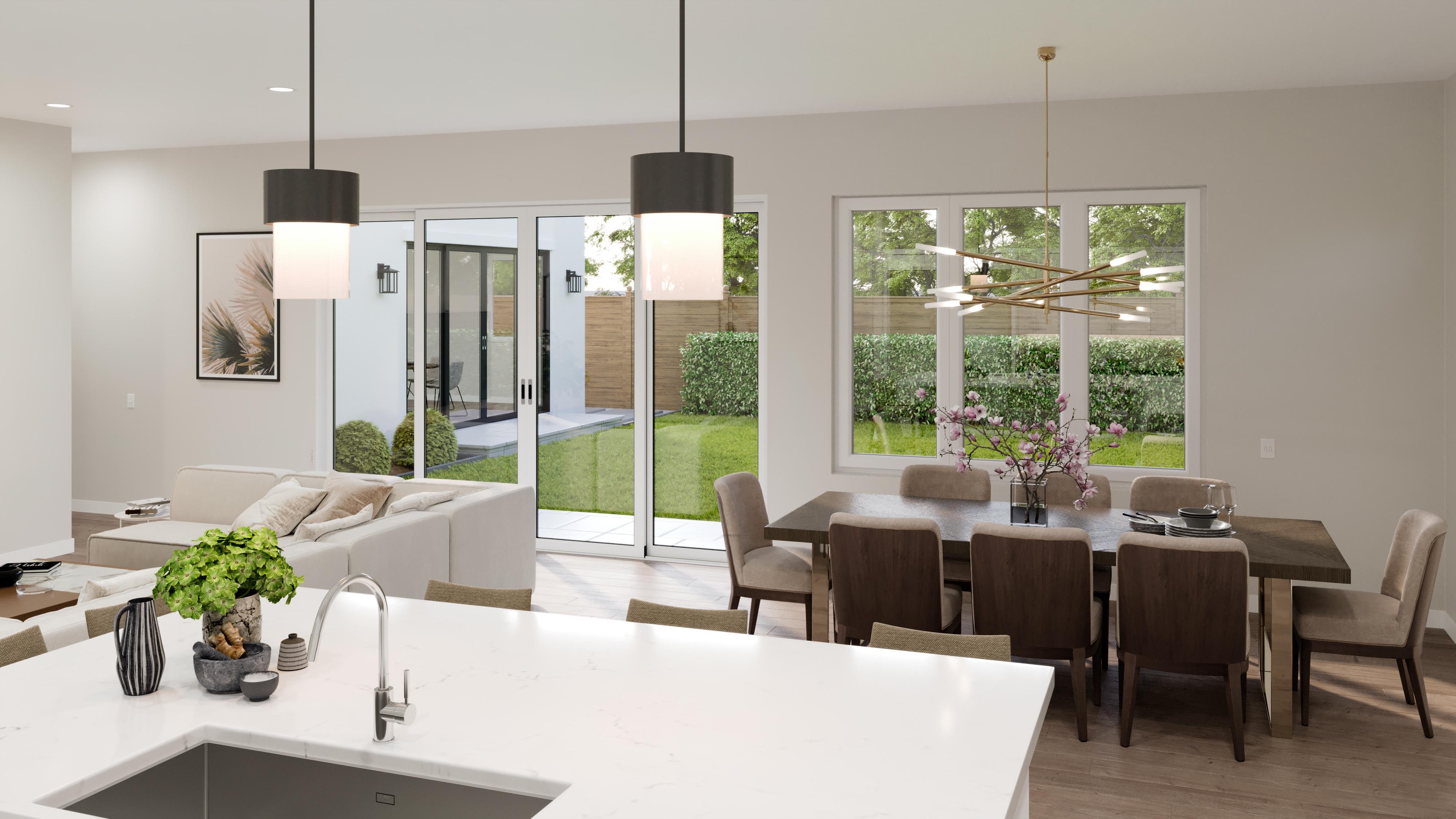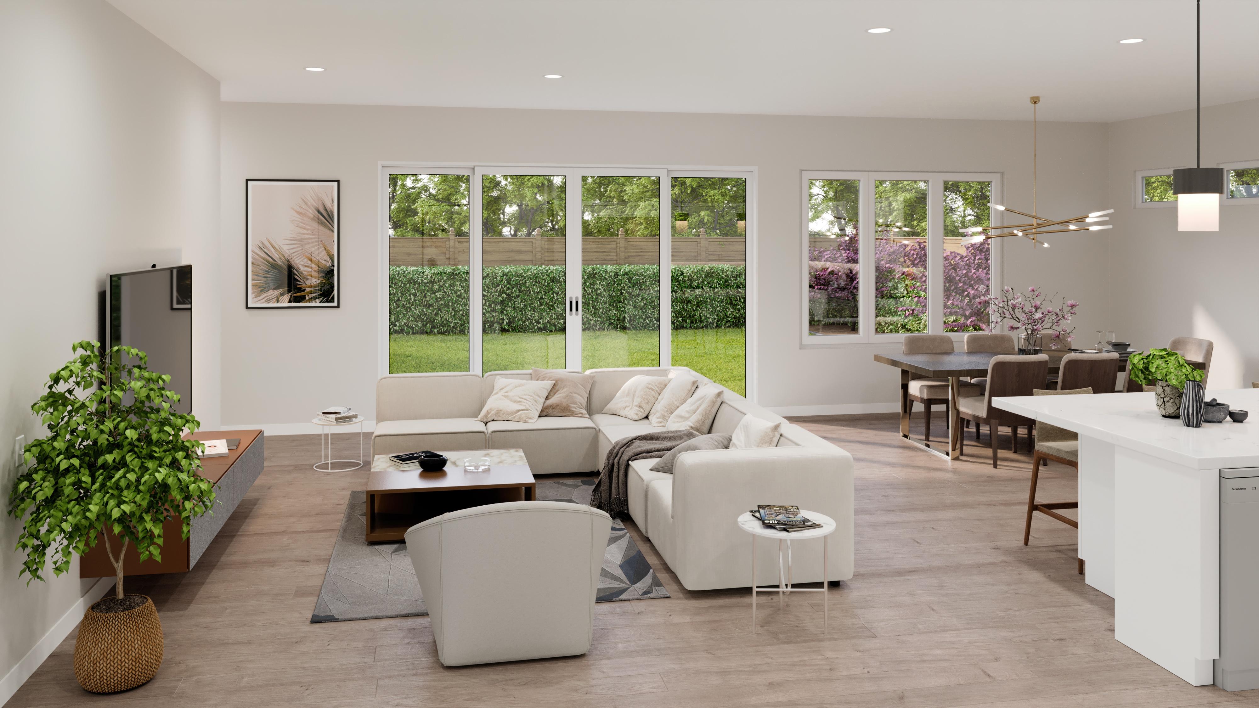 Dramatic entry with soaring ceilings and an elegant living/sitting room offers large picture windows and a beautifully tiled fireplace. Expansive great room for living/dining/kitchen featuring french sliding doors to patio. Chef’s kitchen with Italian Misterio honed quartz, Thermador appliances, custom cabinetry, spacious island and separate pantry. Stunning ½ bath off the main hallway, great for entertaining. Light-filled main floor guest quarters perfect for multi-generational living or home office.