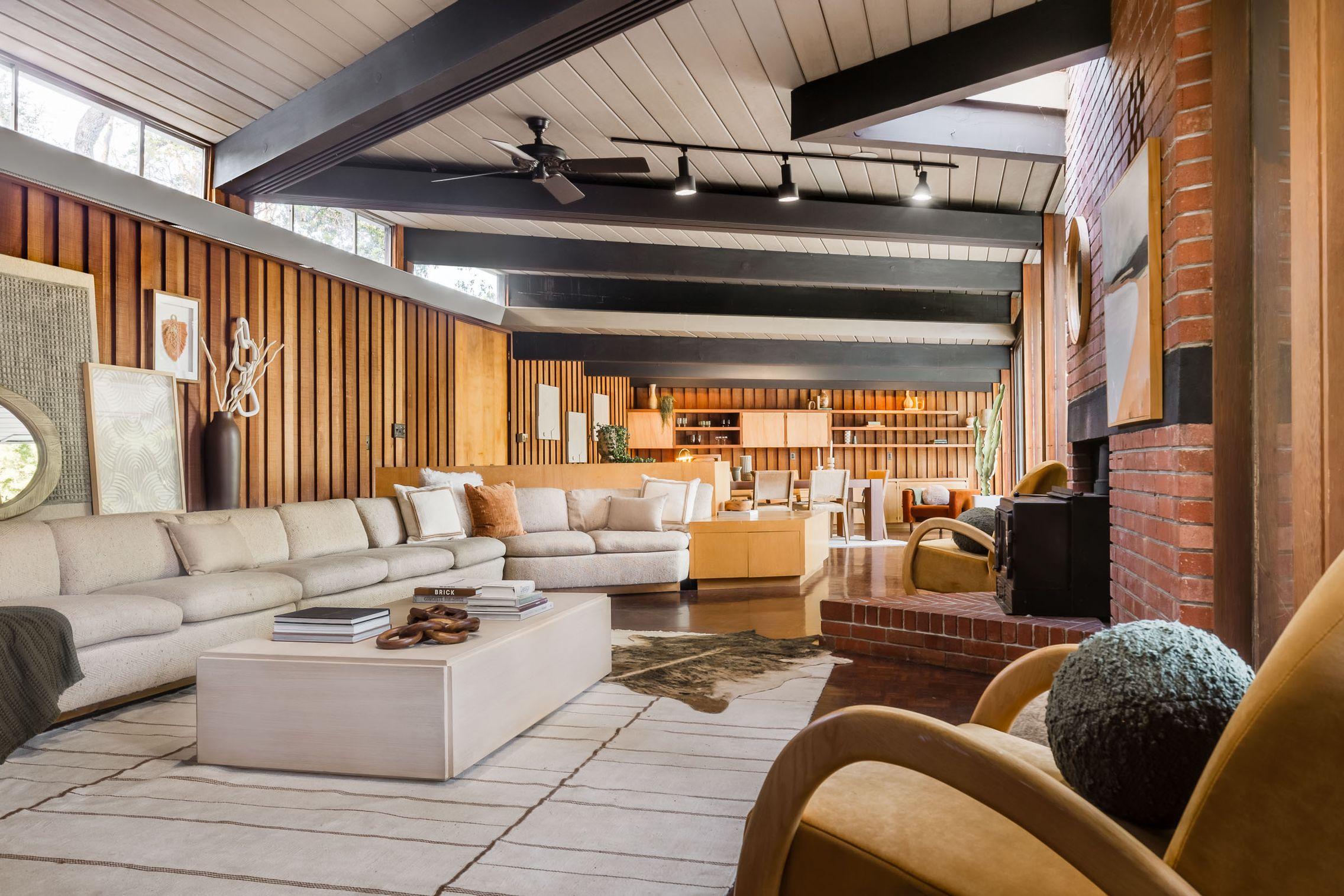 Before introducing new features into his production houses, Eichler tes these innovations within the walls of his Lindenwood home. Sliding do built-in furniture, and even the choice of materials underwent Lillian Eichler's discerning eye, making the residence a "cinemascope" version Eichler tract homes and a crucible for design experimentation.