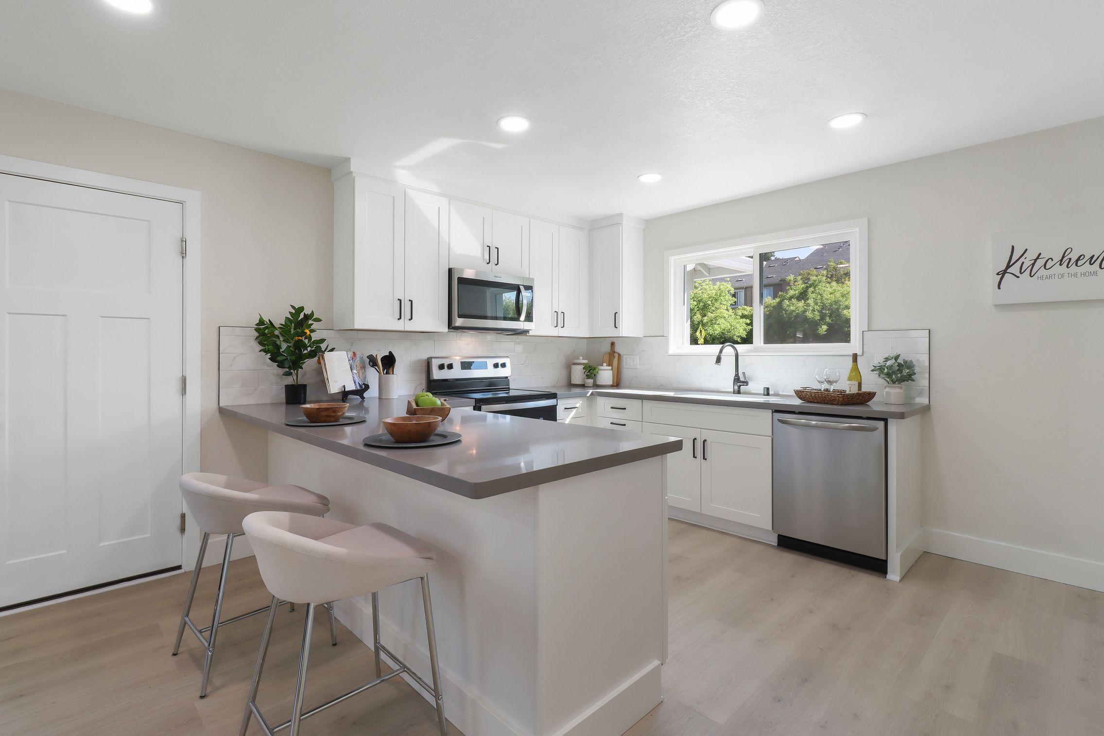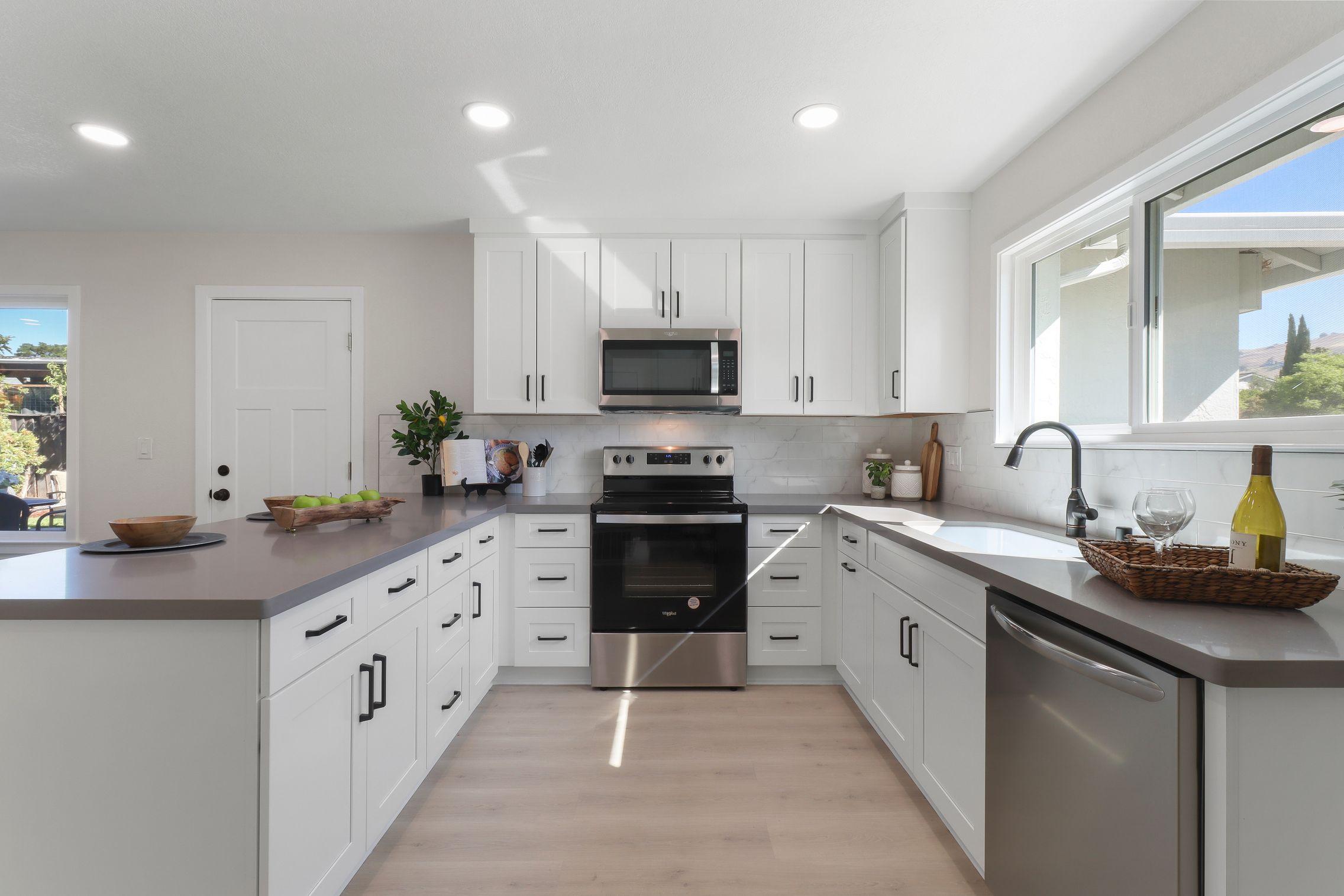 Light-filled formal living room with a fireplace. Stunning new eat-in kitchen with custom cabinets, quartz, tiled backsplash, new stainless steel appliances and dining area with slider to yard. Elegant primary suite with remodeled bath offering designer tiles and stall shower. All other bedrooms are nicely sized.