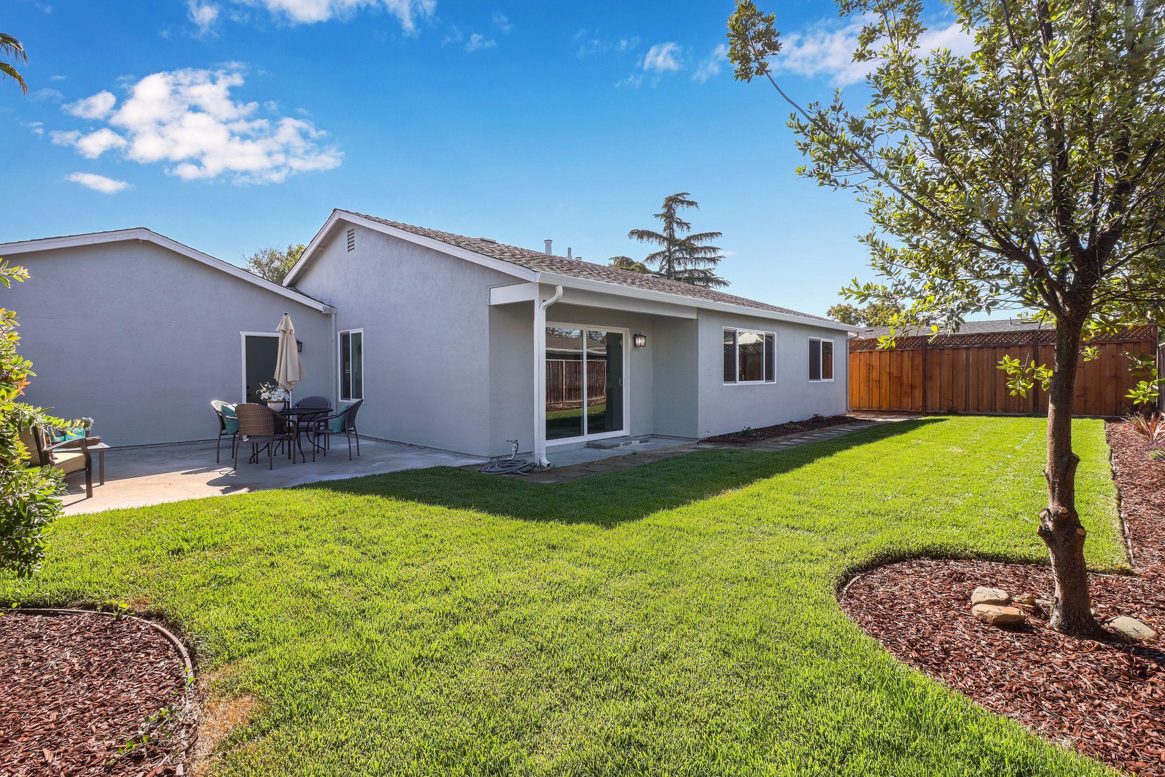 Stunning backyard offers a concrete patio, a large grass area, and a variety of plants and shrubs. Two car garage with newer automatic garage door.